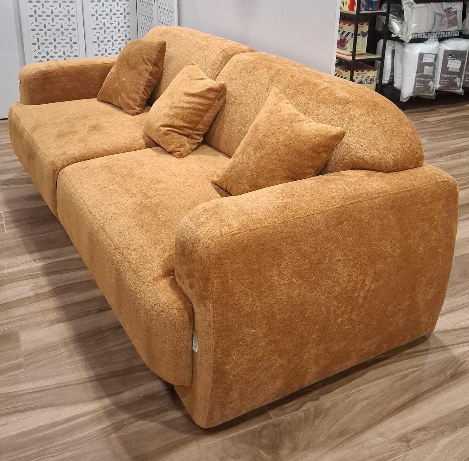 This stylish three-seater sofa features a bold orange upholstery in the “Danza 901” fabric colourway, delivering a striking accent piece for contemporary living spaces. It is complemented by two matching square box cushions, adding both comfort and visual coherence. The sofa is designed for everyday living or welcoming guests, balancing modern aesthetics with vibrant colour and clean lines. The “Harmony Orange 3” model indicates the three-seater configuration and upholstery choice, while the reference and variant codes ensure the correct version and fabric are selected. Ideal in interiors where you want a pop of colour matched with quality upholstery and structured comfort.