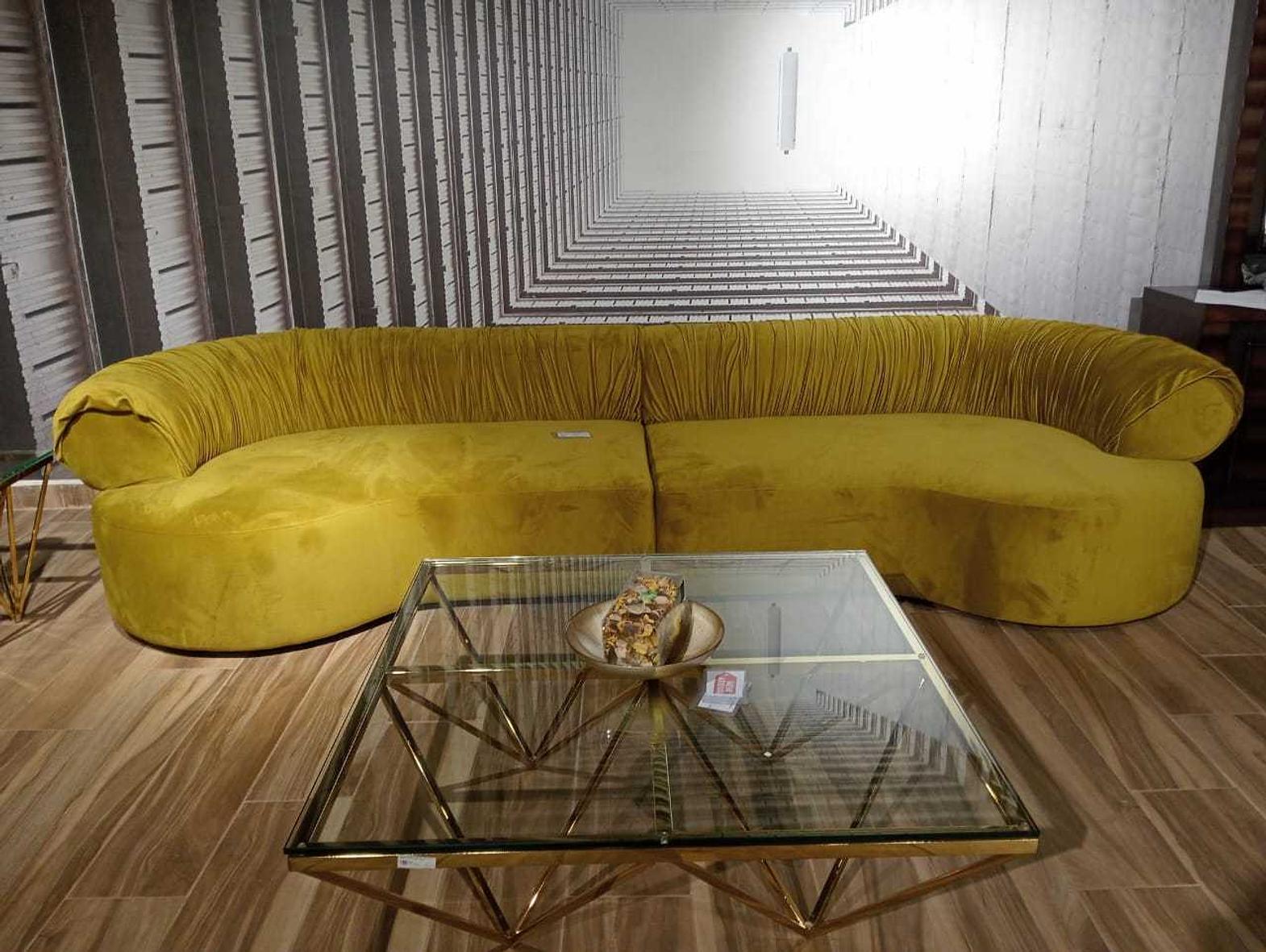 This two-unit modular “Banana” sofa features a stylish olive-toned Carina 24 upholstery with a distinctive wrinkled texture, offering a relaxed yet refined seating option. The fixed backrest design lends it a clean, consistent profile without removable or adjustable parts, enhancing the streamlined look. With dimensions roughly 274 cm in length and 180 cm in width (assuming 274 cm along the main run and 180 cm across the secondary depth), this sofa provides generous space for lounging or shared seating in open living rooms, family zones or recreational areas. The olive colour complements modern and natural-material interiors, while the textured fabric aligns with a preference for material richness and subtle design details.