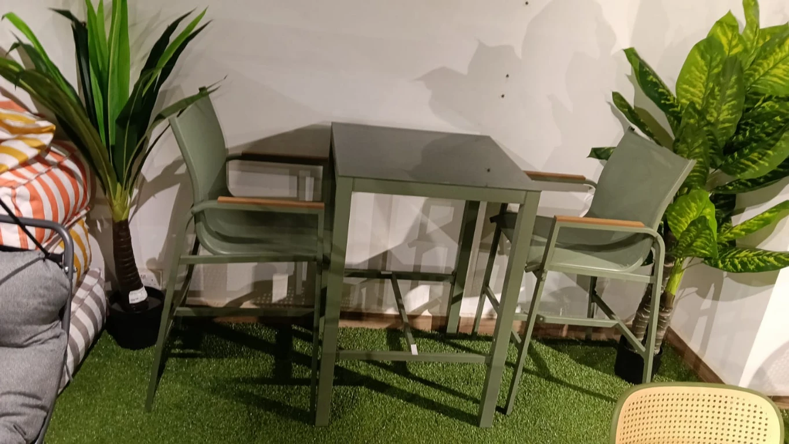 Bar set of 3 metal green texaline green w70*d70*h103cm w57*d67.5*h113.5cm dia100cm #ref:24551bara-set3-sg-green# 1cl#