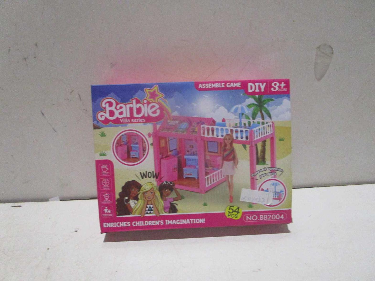 Barbie house set with 1 doll and 52 accessories, perfect for imaginative play.
