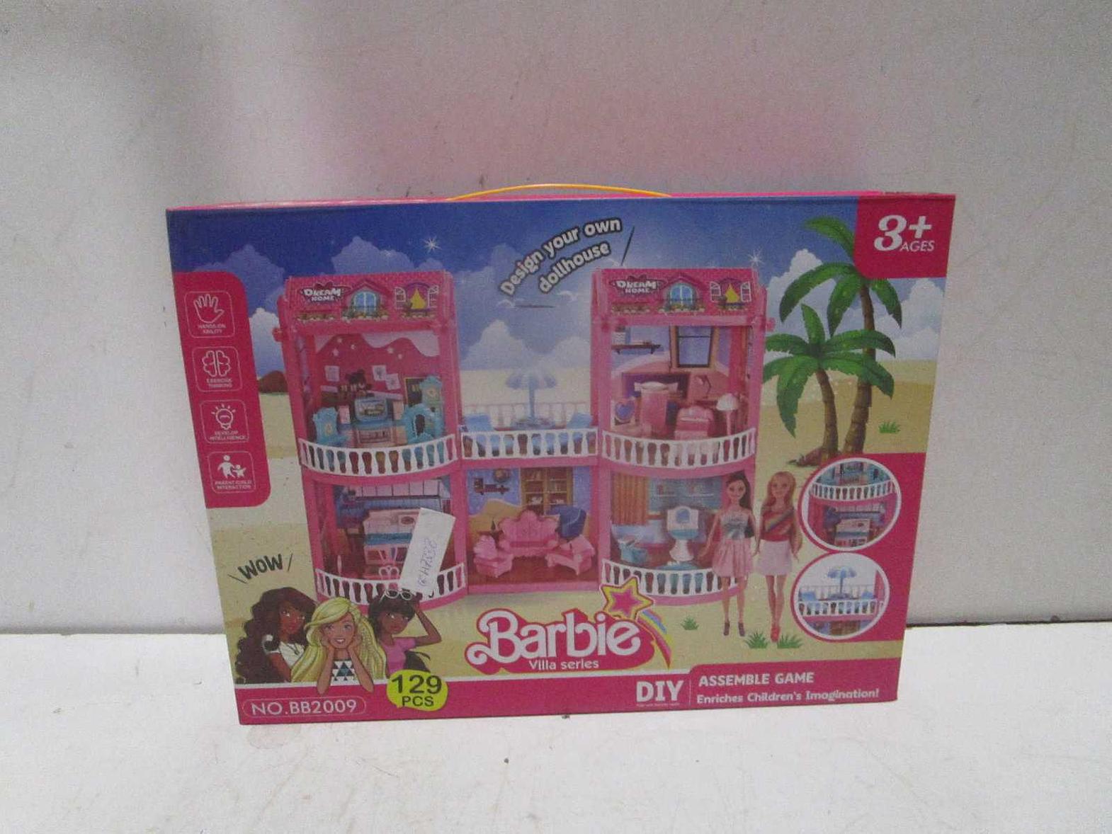 Barbie house set with 2 dolls and 137 accessories, perfect for imaginative play.