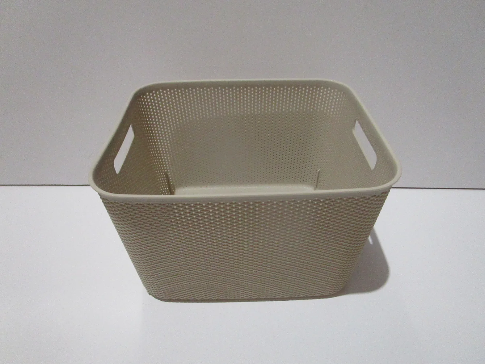 A stylish 19-litre basket in linen-tone fabric with a “crochy” (crochet or textured) finish