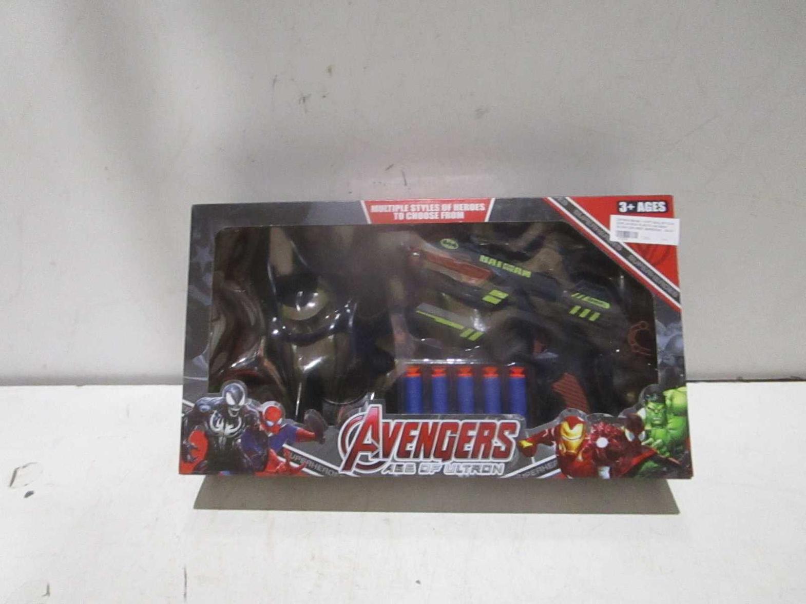 Experience action with this Batman mask and soft bullet gun display box. Durable plastic construction, soft bullet gun for safe play, and detailed design make it an exciting collectible for fans and collectors.