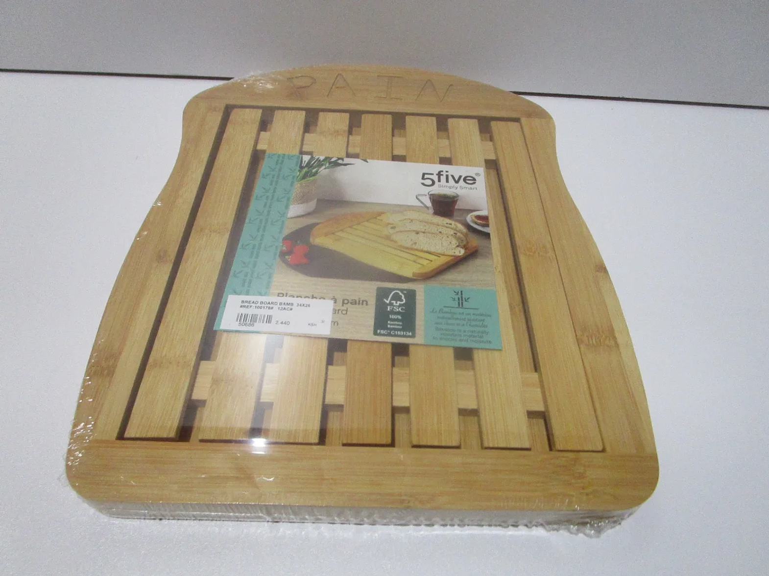 Use-case: Suitable for bread slicing, domestic kitchen food prep, stylish enough to double as a bread serving board or charcuterie board given its bamboo finish.