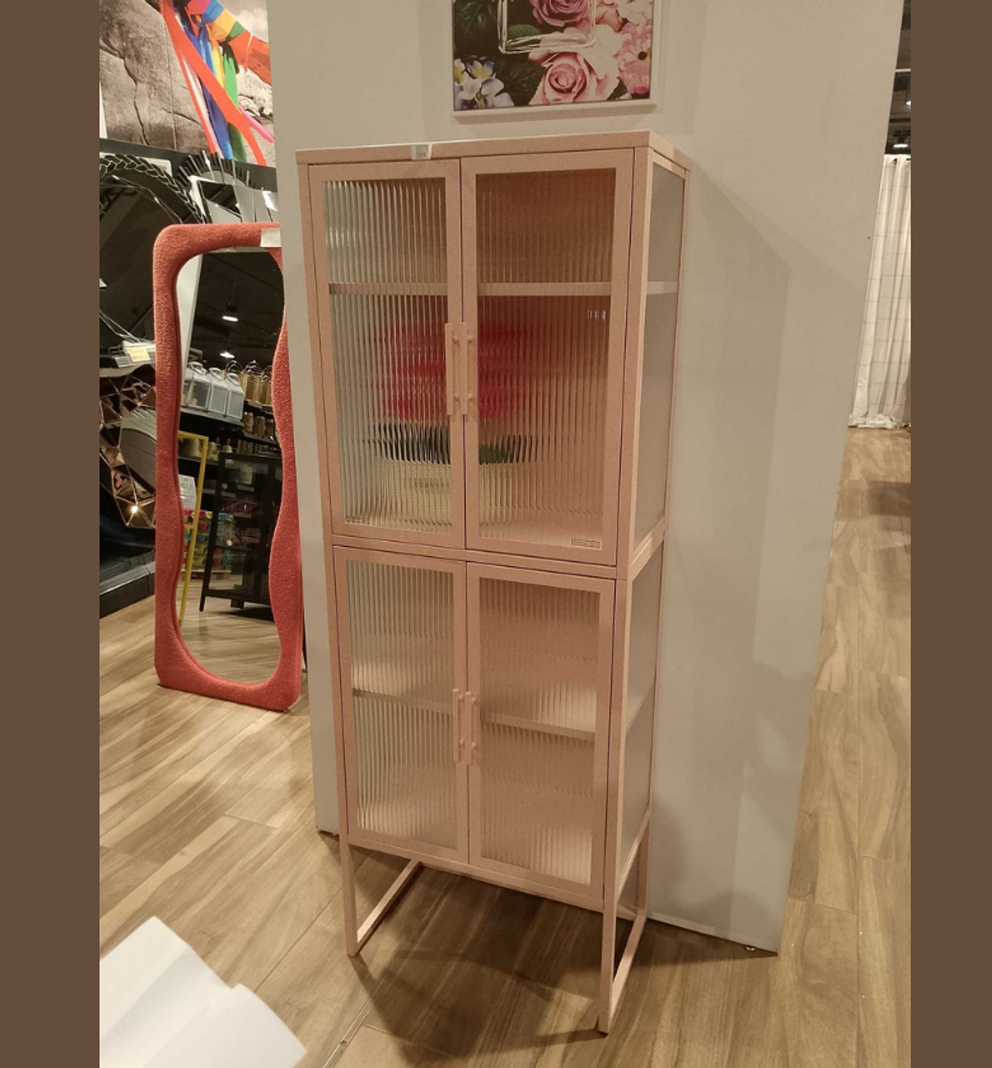 Cabinet double swing door 4mm flate tempered glass magnetic suction door, 2 shelf inside; with wall-mounted device rosa avellana l60*d35*h160 #ref:ha-c055-rosa avellana# 1cl#