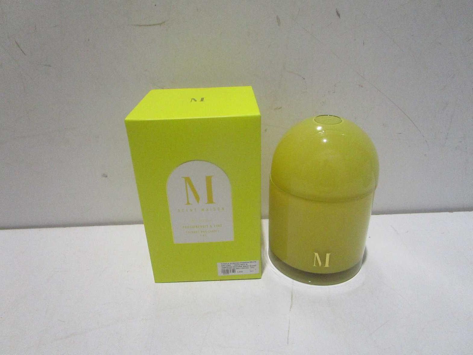 Candle scented passion frute and lime - 1000g wax in tempered machine made glass pot with lid and 3 wicks - 10% fragrance - packaging in coloured card board box 400g yellow #ref:mar1000pl# 4ac#