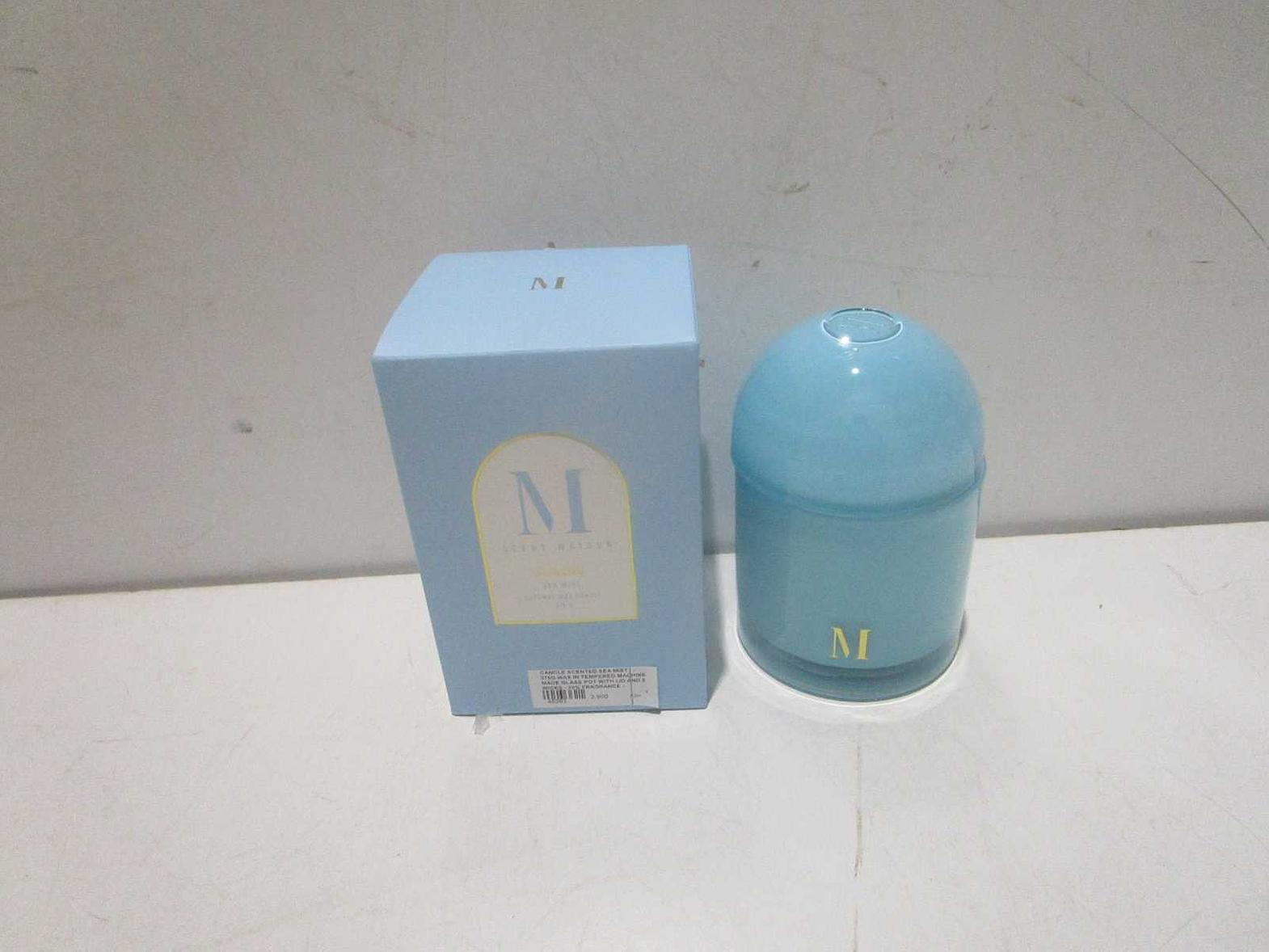 Candle scented sea mist - 375g wax in tempered machine made glass pot with lid and 2 wicks - 10% fragrance - packaging in coloured card board box 400g blue #ref:mar13sm# 6ac#