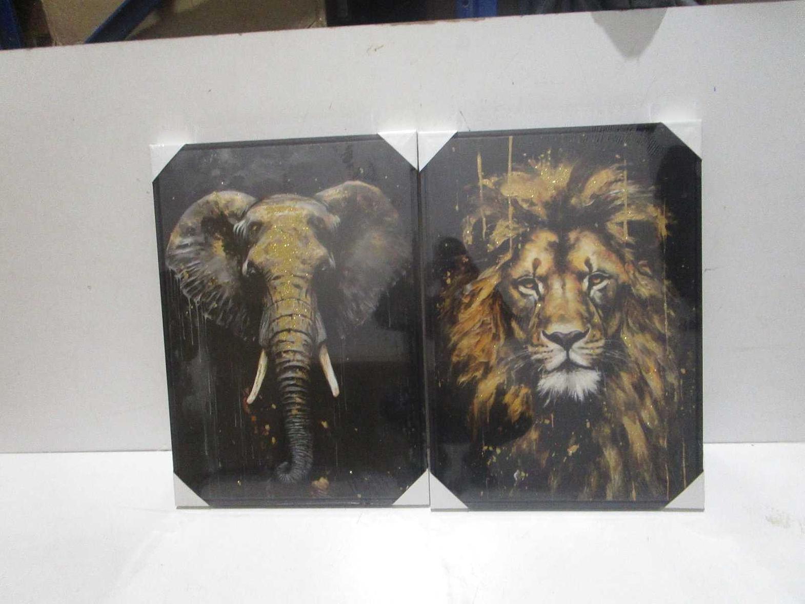Canvas printed 2 assorted wifh mdf back and plastic frame elefant #ref:xcc24050# 6ac#