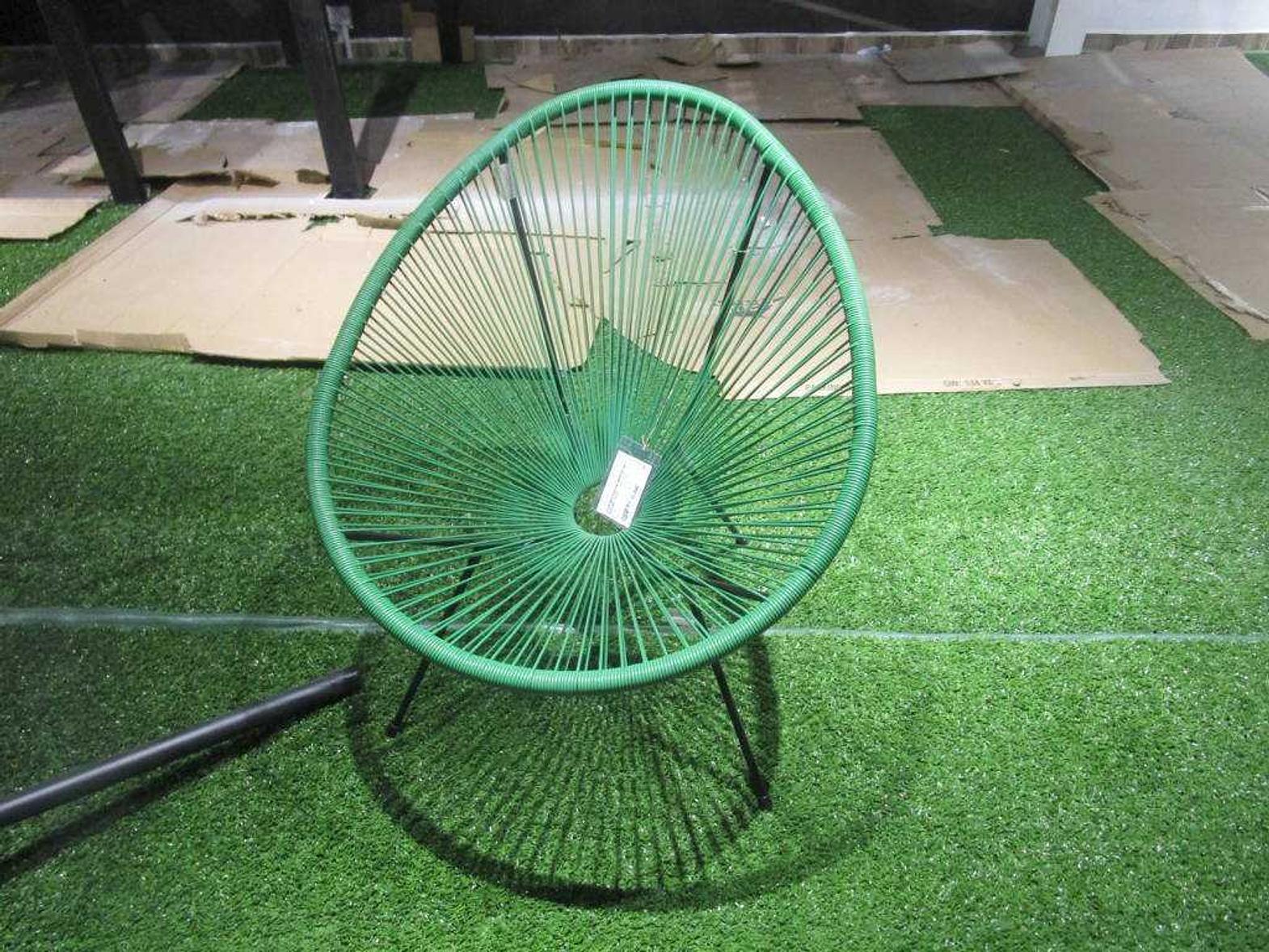 Embrace casual outdoor living with the stylish and comfortable Acapulco Accent Chair. Featuring a classic, oval silhouette, the chair is constructed with a robust black steel frame for stability and longevity. The seating surface utilizes flexible, UV-resistant polyvinyl cords woven into an appealing radial pattern, offering a unique suspension that molds to the body for ultimate comfort. While this particular model is showcased in a vibrant green, the design is part of a multicolor collection to suit various décor themes. This piece is lightweight and stackable, making it an ideal, low-maintenance choice for adding a touch of contemporary flair to any terrace, poolside area, or garden space across the country.