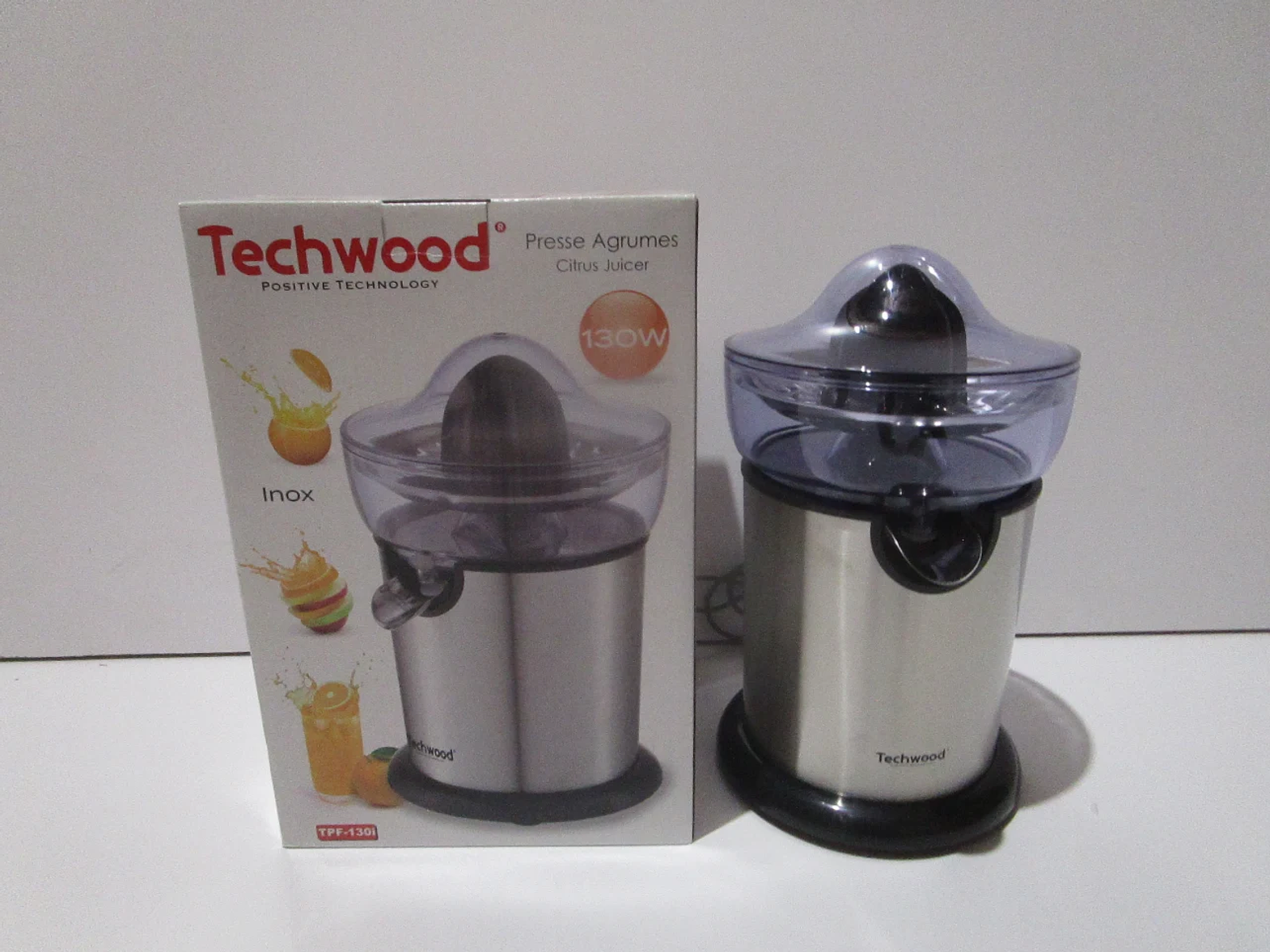 Citrus press stainless steel automatic start by pressure - double rotations double cones two-position pouring spout: open for service in a glass "stop-drip" - closed: removable 350ml container pulp filter - cord storage under the base power #ref:tpf-130i# 6ac#