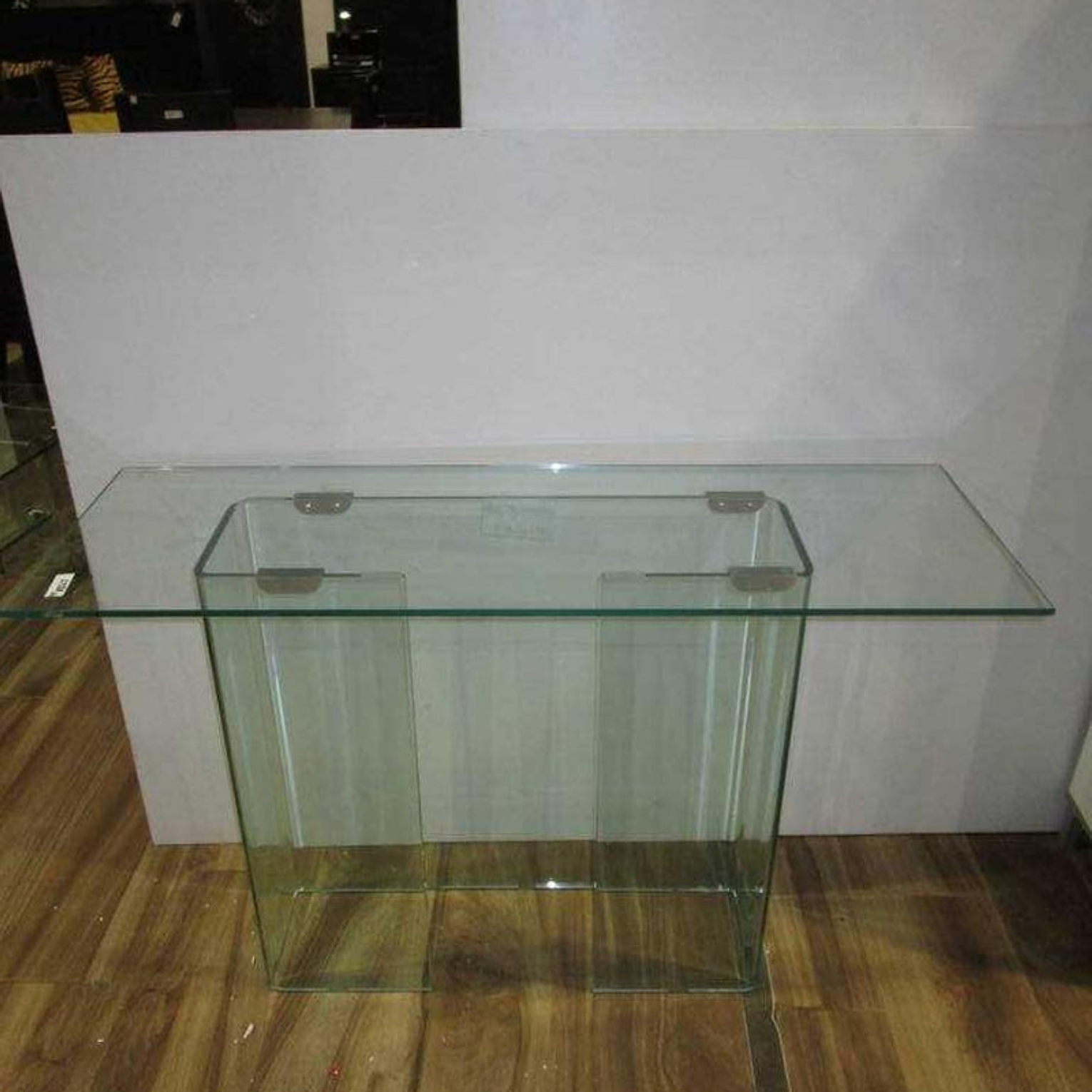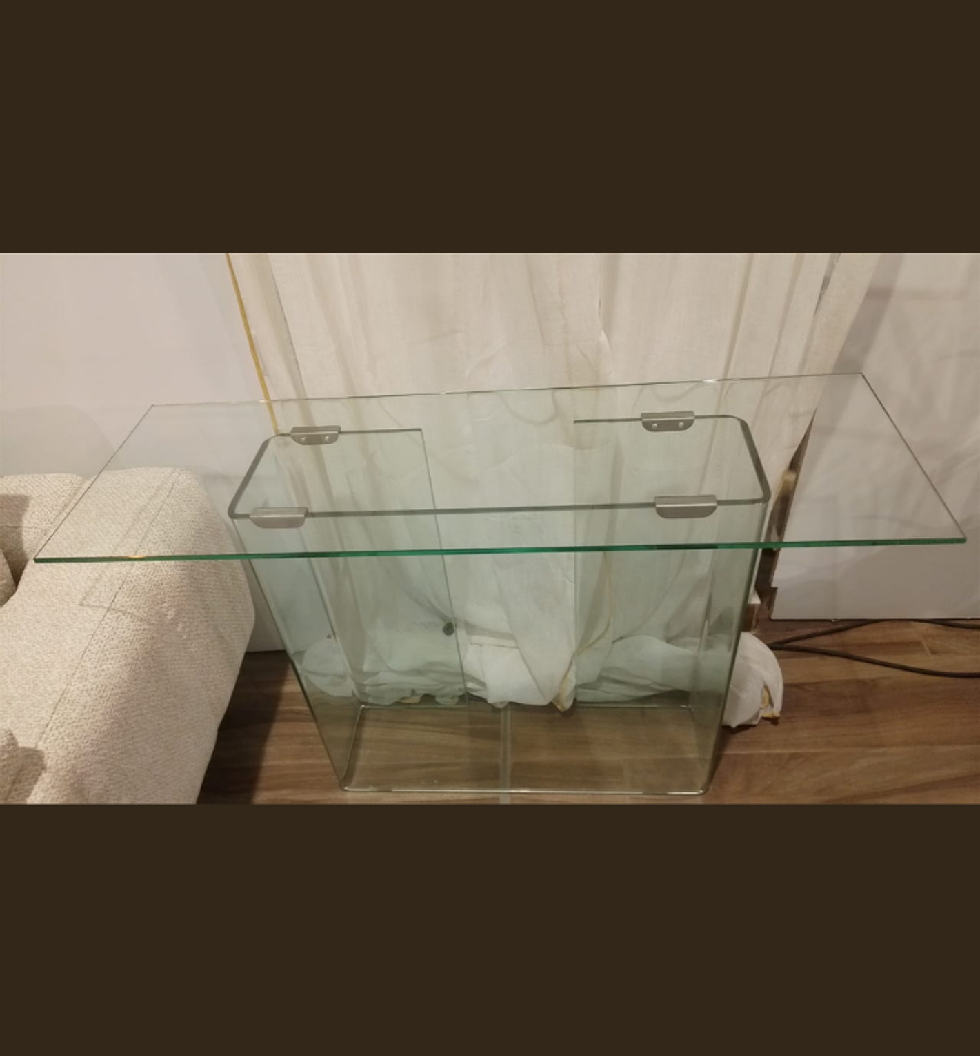 This elegant console table is the epitome of minimalist design, bringing an element of sophistication and visual lightness to any room. Crafted from robust 10mm clear tempered glass, the table features a seamless, monoblock structure. The absence of traditional legs or frames allows light to flow freely, creating the illusion of greater space, making it an ideal piece for narrow hallways, entryways, or smaller living areas. The tempered glass provides high durability and safety, being significantly stronger than standard glass and designed to shatter safely if impacted. With dimensions of approximately 120 cm wide, 40 cm deep, and 75 cm high, the surface provides ample space to display decorative items, lamps, or store everyday essentials with a clean, uncluttered aesthetic. This transparent piece integrates effortlessly into modern, contemporary, and even classic interiors, enhancing the surrounding decor without overpowering it.