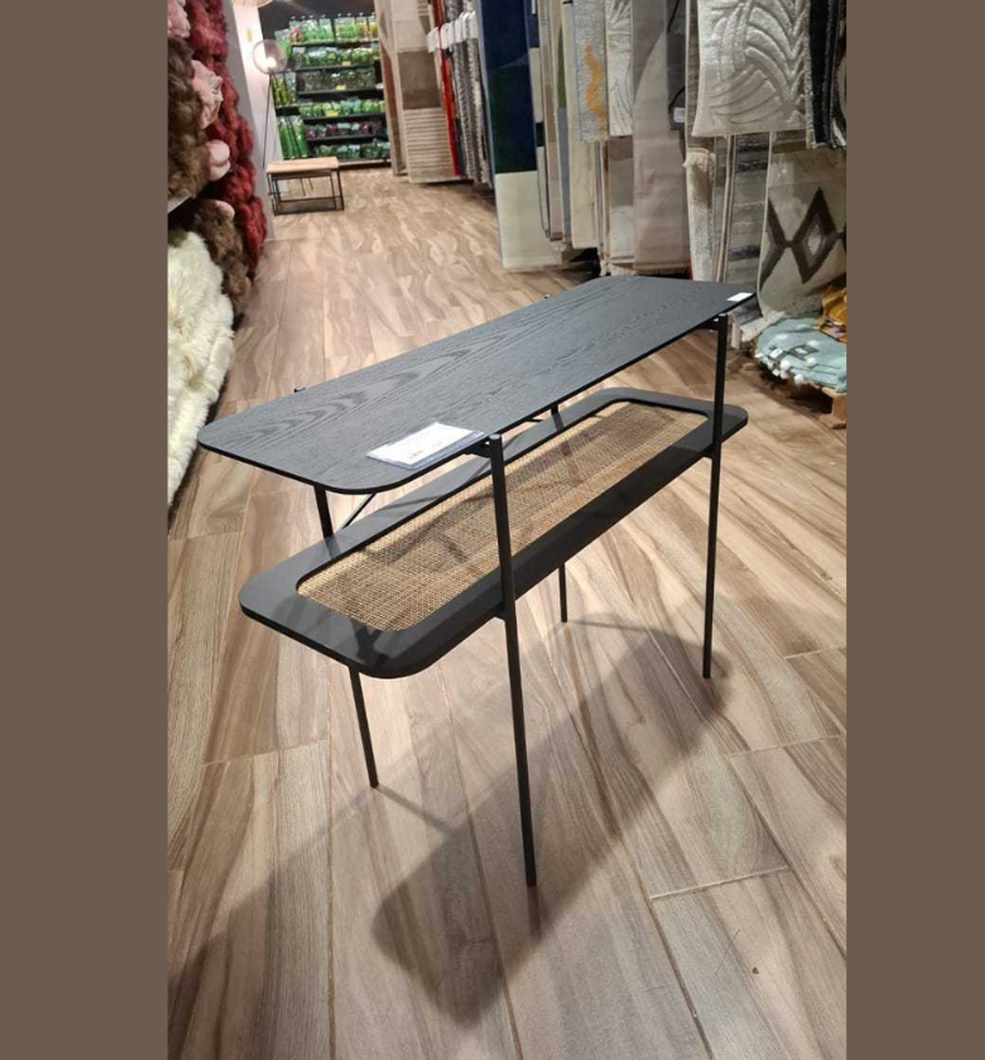 Console mdf veneer, natural rattan iron feet black 100*37.5*75.5 #ref:nl2310027# 1cl#