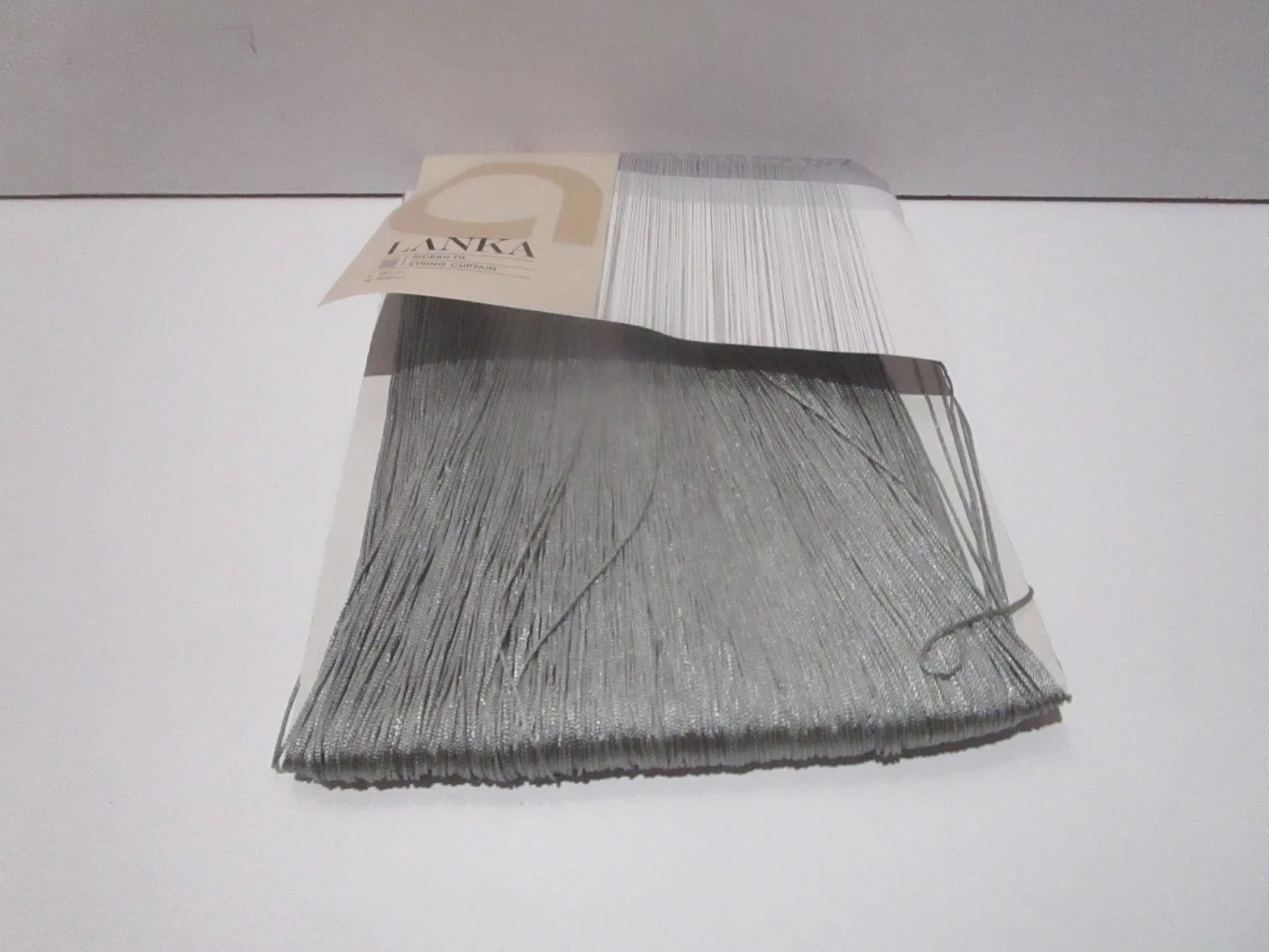 A grey thread-style curtain in a light grey tone — designed to gently filter light and add soft texture to a room.