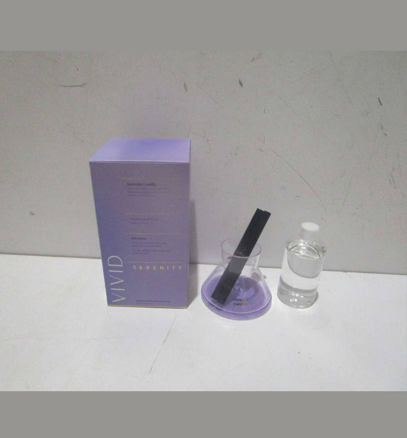 Diffuser fragrance lavender vanilla fragrance - 200ml fragrance in tempered machine made glass jar and 2 black cotton sticks d1xh15cm - packaging in coloured card board box 400g lilac #ref:df200flv# 6ac#