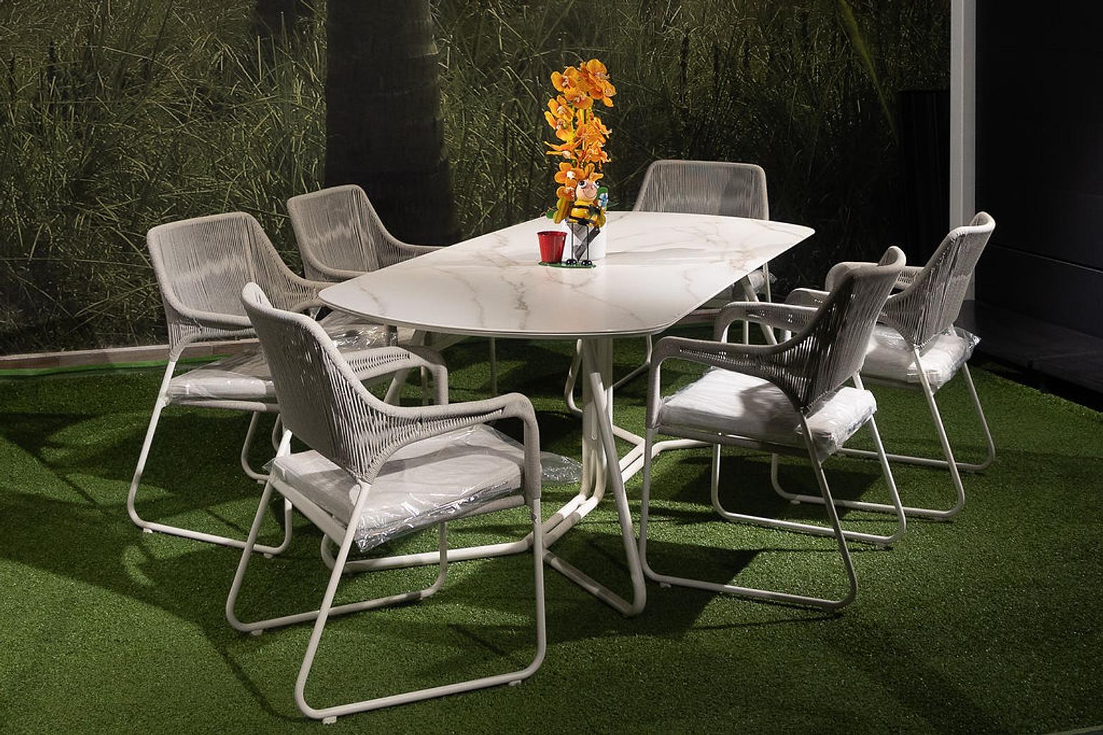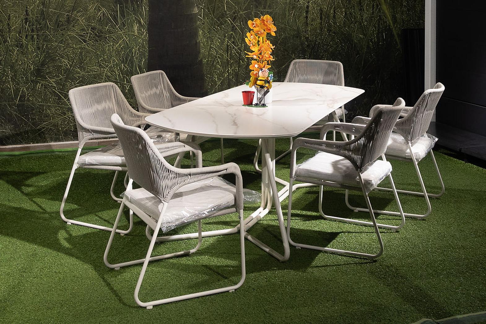 The DS24303 Dining Set offers both elegance and practicality for your dining space. The table measures 220 × 100 × 76 cm, providing ample room for meals and entertaining, while the six matching chairs, each 62 × 62 × 87 cm, feature plush beige cushions for comfort and style. Designed to complement a variety of interiors, this set combines sturdy construction with refined aesthetics, ensuring durability for everyday use and a welcoming atmosphere for special occasions. Its harmonious design makes it a versatile addition to both modern and classic dining rooms. Dining table+6 chairs beige cushion as #24101 table: 220*100*76 chair:62*62*87 #ref:ds24303# 5cl#