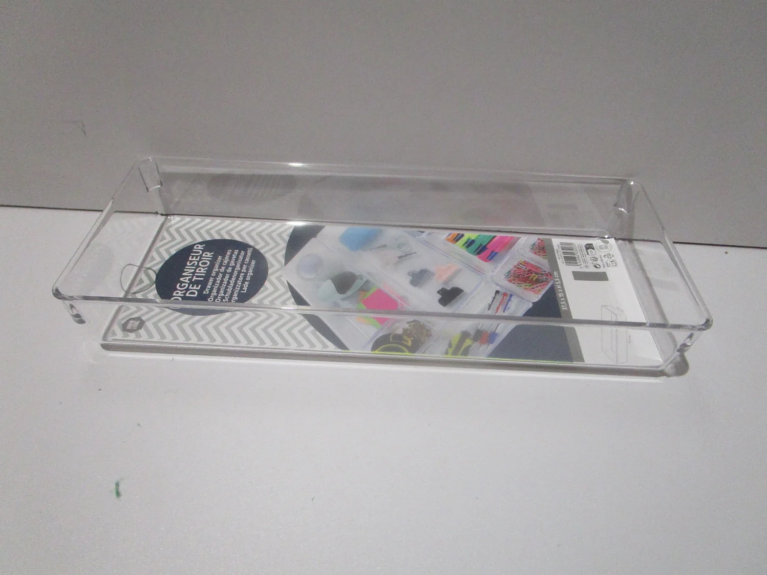 This extra large, crystal-clear drawer organizer is an excellent tool for maintaining systematic order throughout your household. Crafted from resilient, high-quality polystyrene, the tray offers long-lasting performance and stands up well to daily use. Its transparent design is a key feature, allowing users to effortlessly locate items at a glance, minimizing clutter and wasted time searching. Ideal for use in deeper drawers or wider sections, it keeps everything from kitchen gadgets and workshop components to beauty products neatly segmented. With approximate dimensions of 37.5 cm x 15 cm and a height of 5.5 cm, its elongated structure provides versatile storage capacity while ensuring a clean, modern look inside any cabinet or desk drawer.