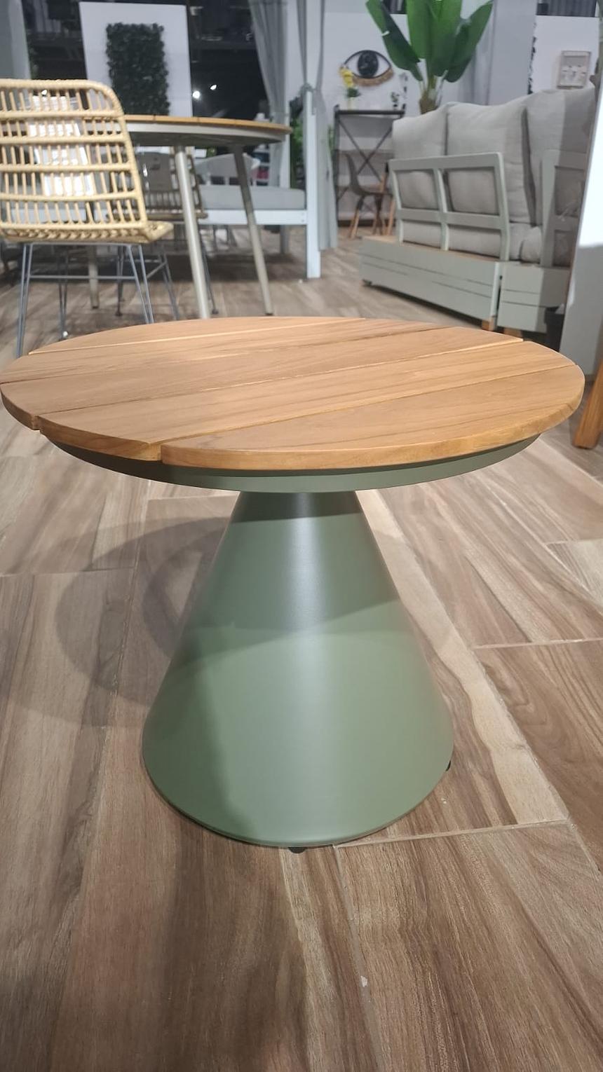 End table my-l179 dk green aluminu frame teak wood top dia 50x40 #ref:sm240907012-dk green# 1ac#