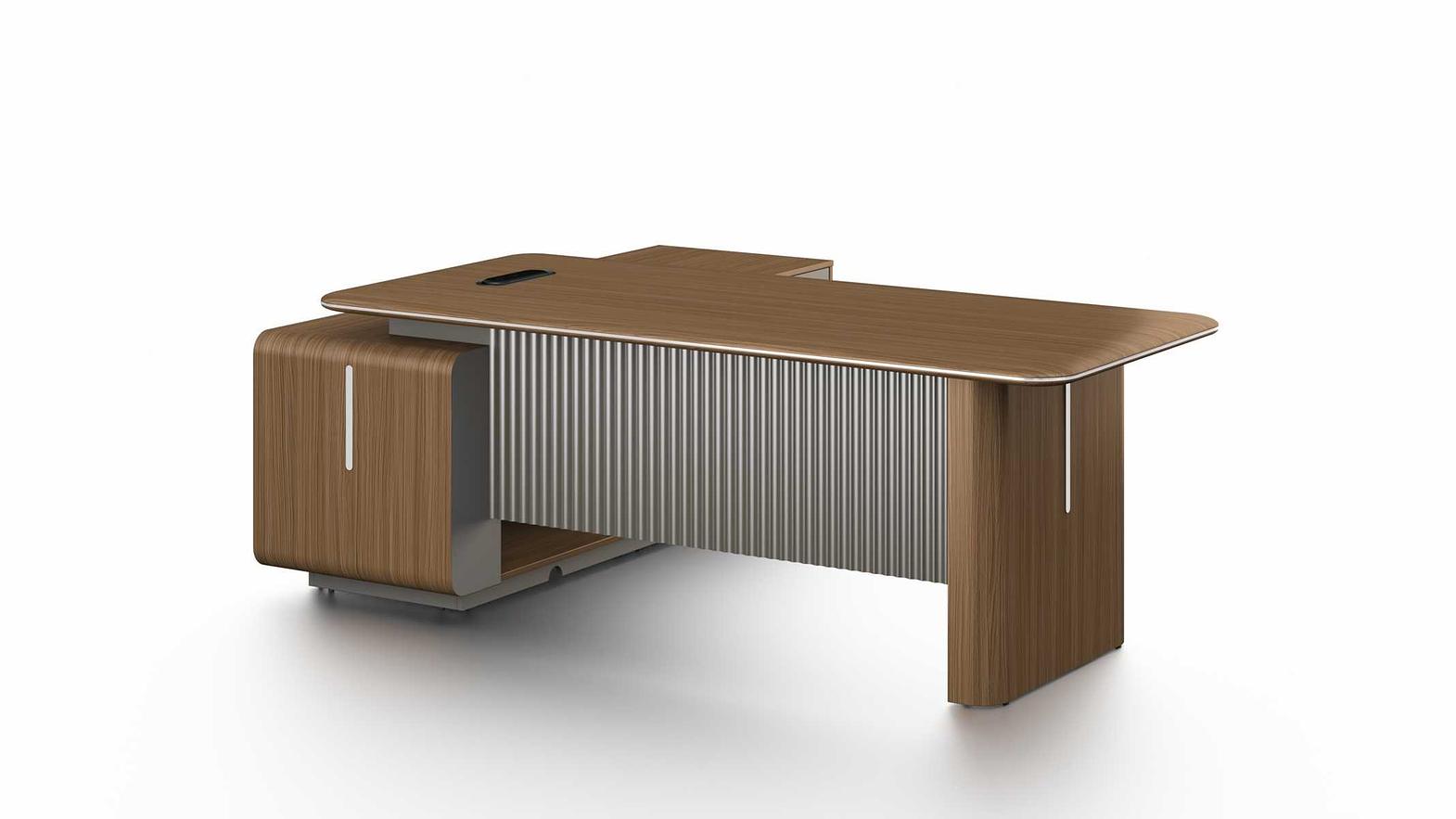 Executive desk 2.2m da26 usa walnut + db-29 meteorite gray melamine 2200*1850*760 table top:2000*900*50 side return:1800*600*640 #ref:dg27-d0122# 4cl#