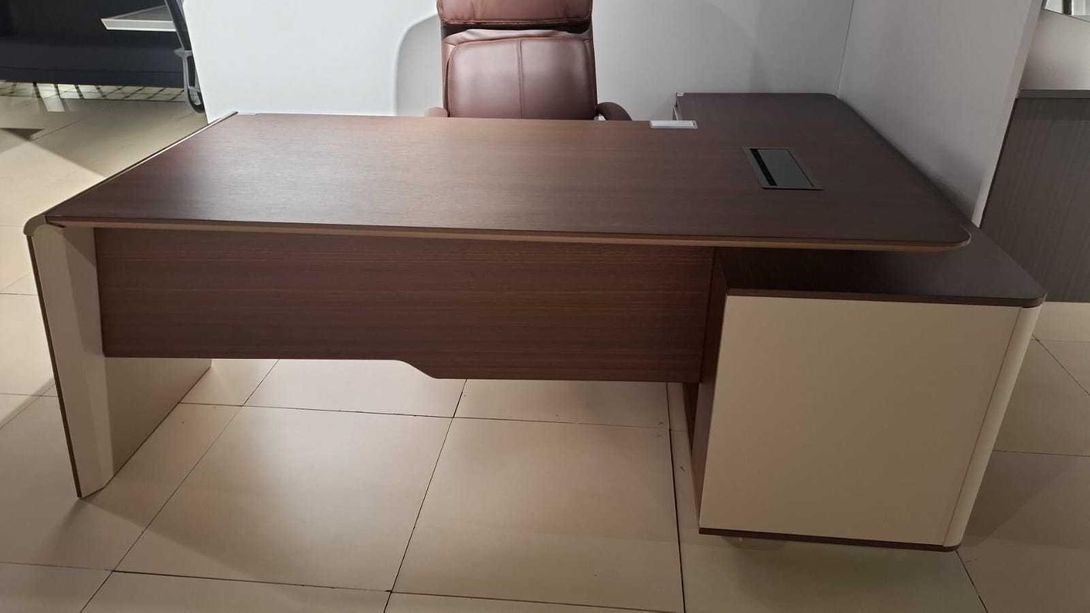 Premium executive desk featuring an elegant Australia oak and ash melamine finish. The spacious L-shape work surface provides ample room for documents, devices, and office essentials, offering both style and practicality for modern executive offices. Stable, durable, and designed to elevate any professional workspace.