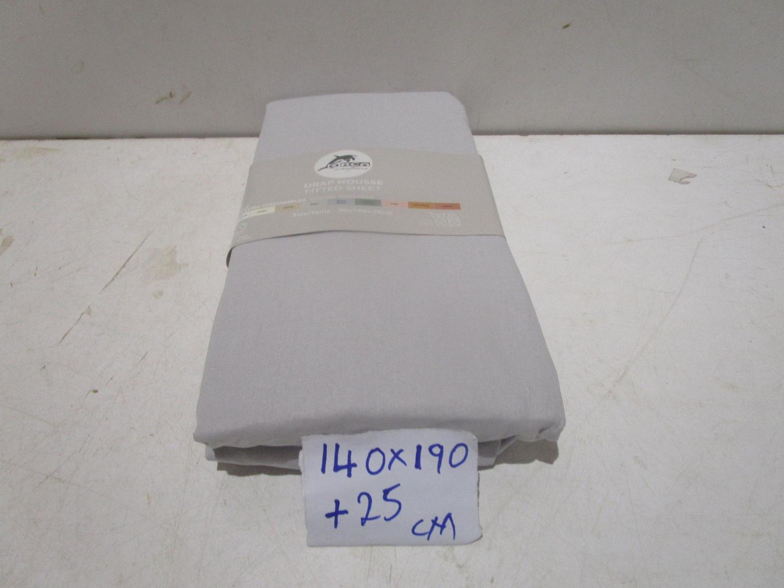 Fitted sheet plain col (100 % coton 57 fils 30 x 30 - 76 x 68) grs/mâ². packed in pvc bag with insert card and flat cardoard stiffner #ref:57 fils 140x190+25 g# 10ac#