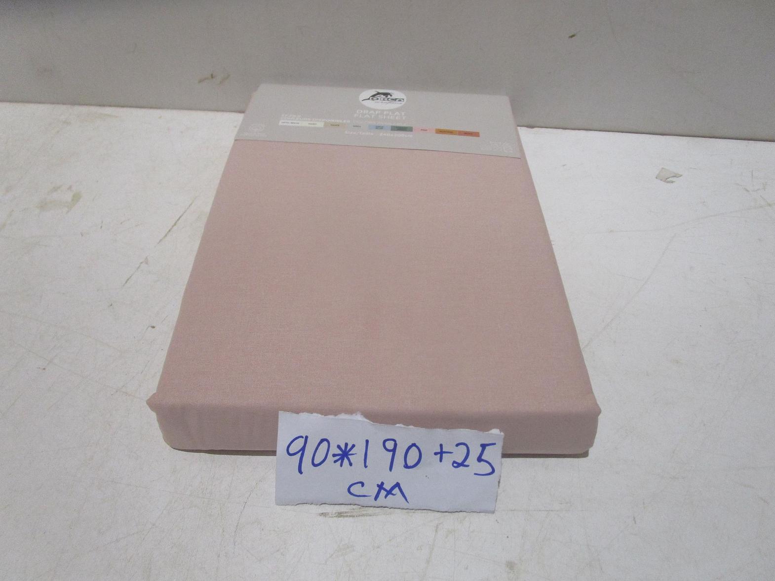 Fitted sheet plain col (100 % coton 57 fils 30 x 30 - 76 x 68) grs/mâ². packed in pvc bag with insert card and flat cardoard stiffner #ref:57 fils 90x190+25 pi# 12ac#