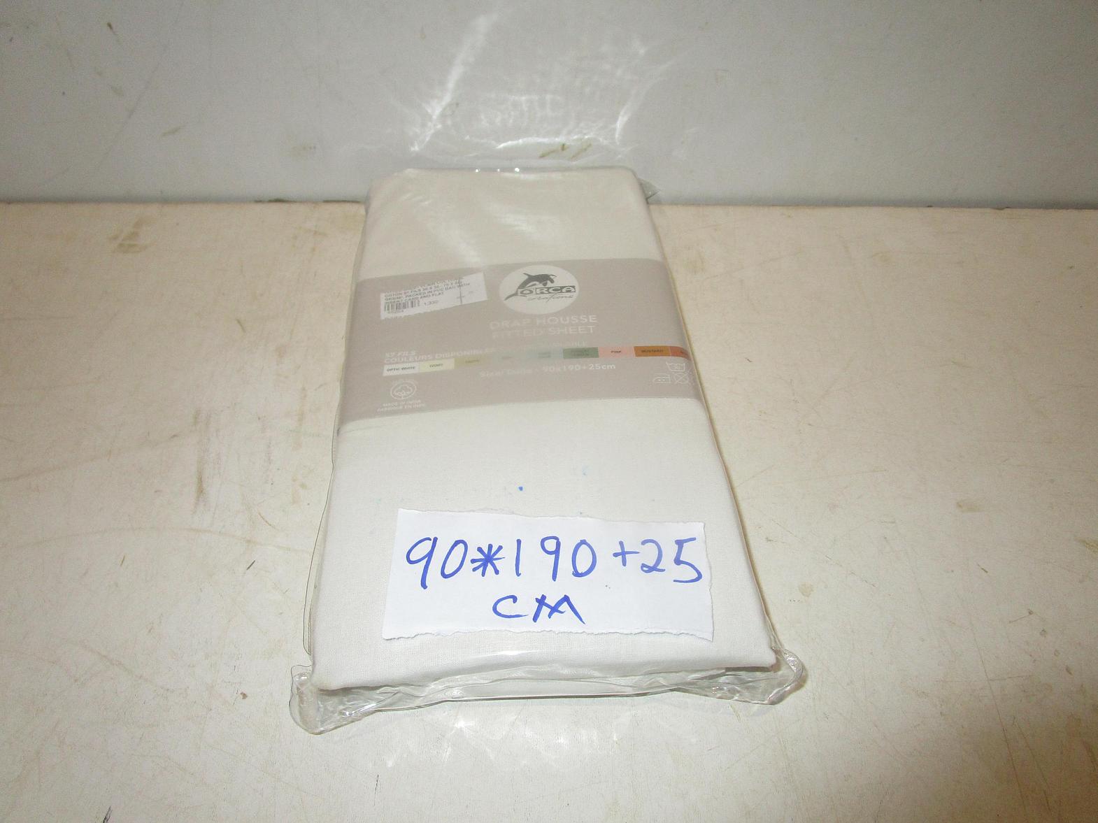 Fitted sheet plain col (100 % coton 57 fils 30 x 30 - 76 x 68) grs/mâ². packed in pvc bag with insert card and flat cardoard stiffner #ref:57 fils 90x190+25/2# 12ac#