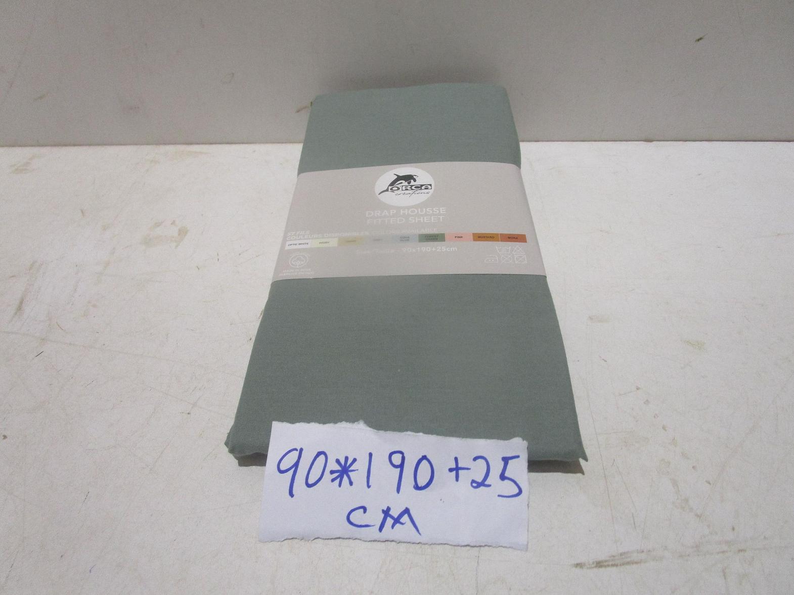 Fitted sheet plain col (100 % coton 57 fils 30 x 30 - 76 x 68) grs/mâ². packed in pvc bag with insert card and flat cardoard stiffner #ref:57 fils 90x190+25/4# 12ac#