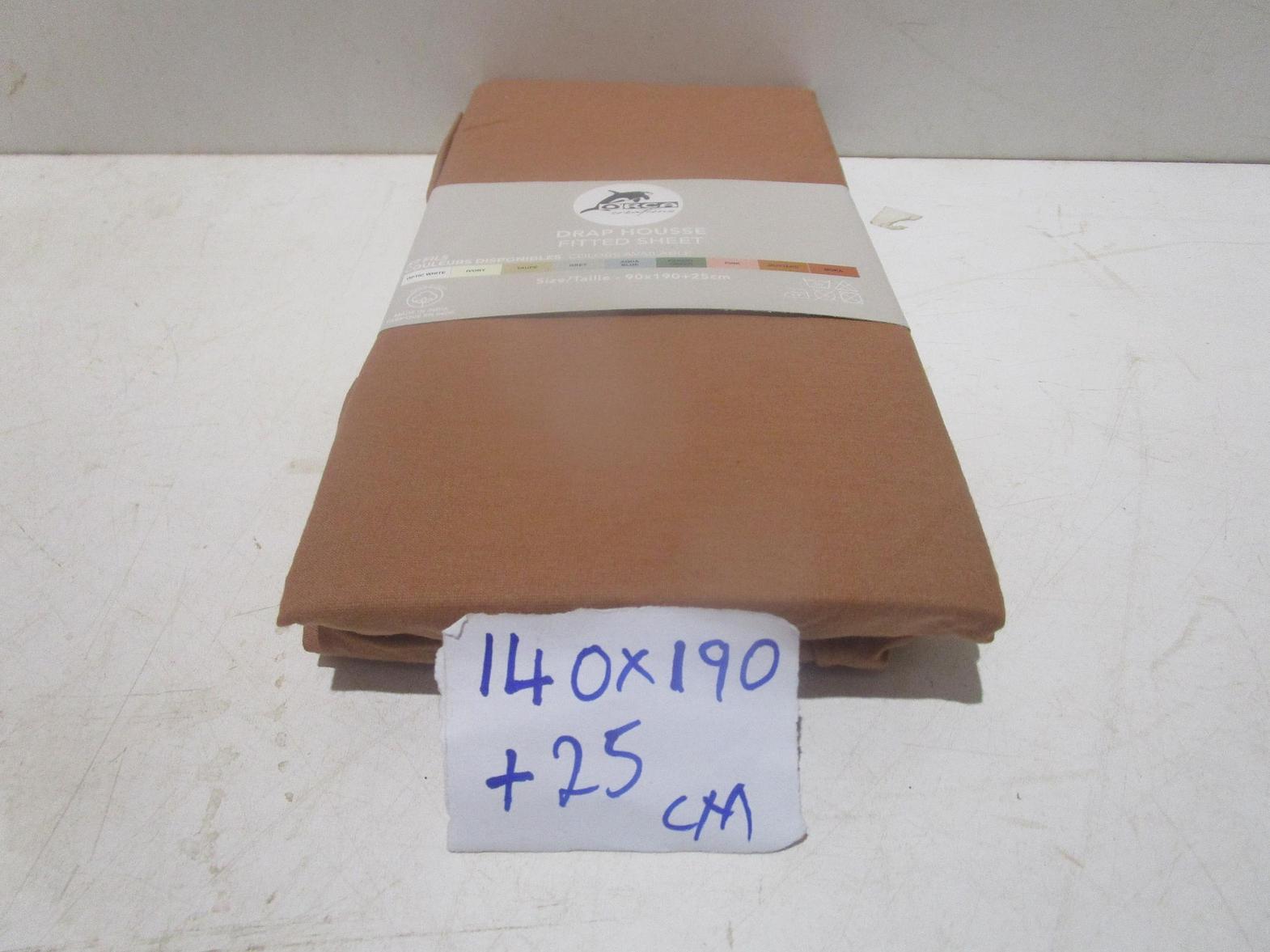 Fitted sheet plain col (100 % coton 57 fils 30 x 30 - 76 x 68) grs/mâ². packed in pvc bag with insert card and flat cardoard stiffner #ref:57 fils 140x190+2/8# 10ac#