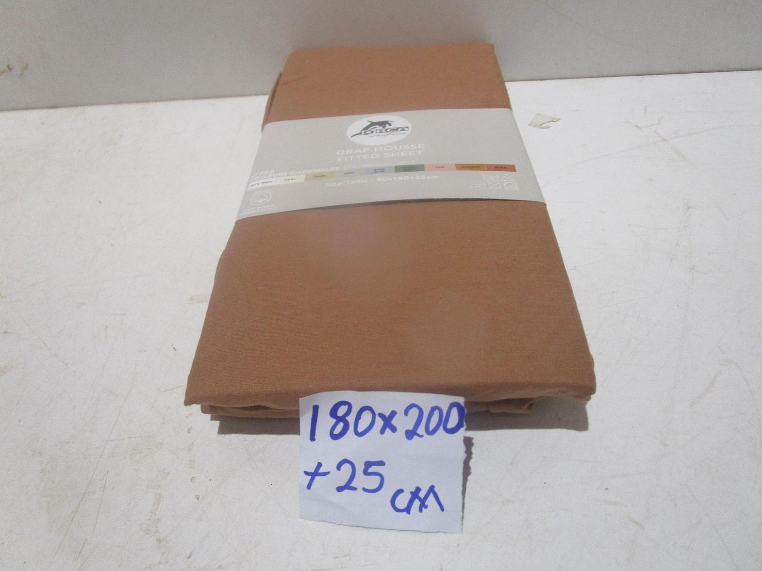 Fitted sheet plain col (100 % coton 57 fils 30 x 30 - 76 x 68) grs/mâ². packed in pvc bag with insert card and flat cardoard stiffner #ref:57 fils 180x200+2/8# 10ac#
