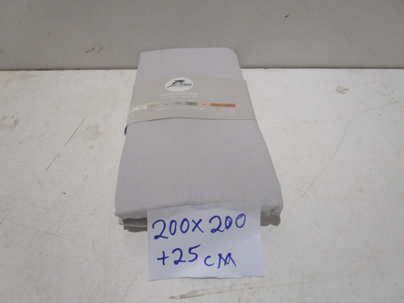Fitted sheet plain col (100 % coton 57 fils 30 x 30 - 76 x 68) grs/mâ². packed in pvc bag with insert card and flat cardoard stiffner #ref:57 fils 200x200+25 g# 10ac#