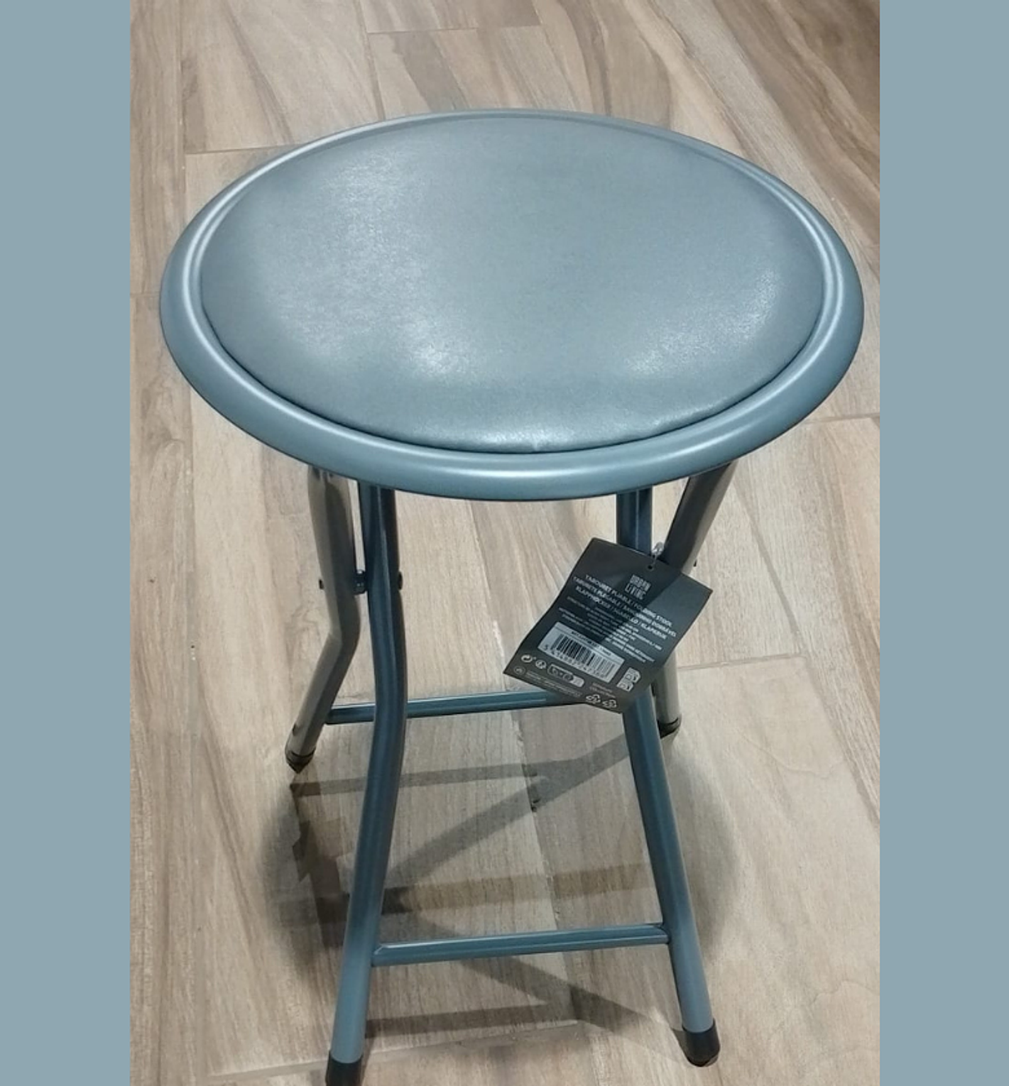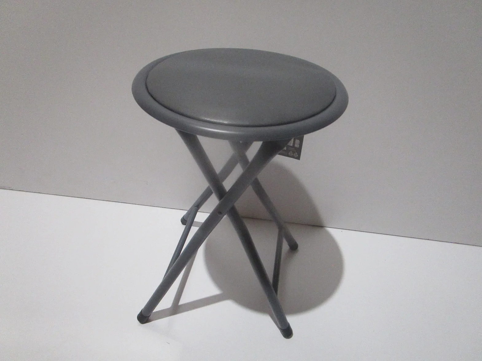 Discover the ultimate in flexible home furnishing with this highly practical round folding stool. It offers a stable, durable seating solution, perfect for homes needing extra flexibility for guests or tight spaces. The seat is generously padded and covered in resilient grey PVC, which is both comfortable for short-term use and remarkably easy to wipe clean. Its robust metal frame forms an effective cross-leg structure that guarantees stability when open. Crucially, the stool quickly collapses flat for incredible storage ease, making it a functional item you can keep in a cupboard or car trunk until needed. With dimensions of approximately 30 cm x 30 cm and a height of 45 cm, this small footprint stool is an essential, portable piece of household equipment.