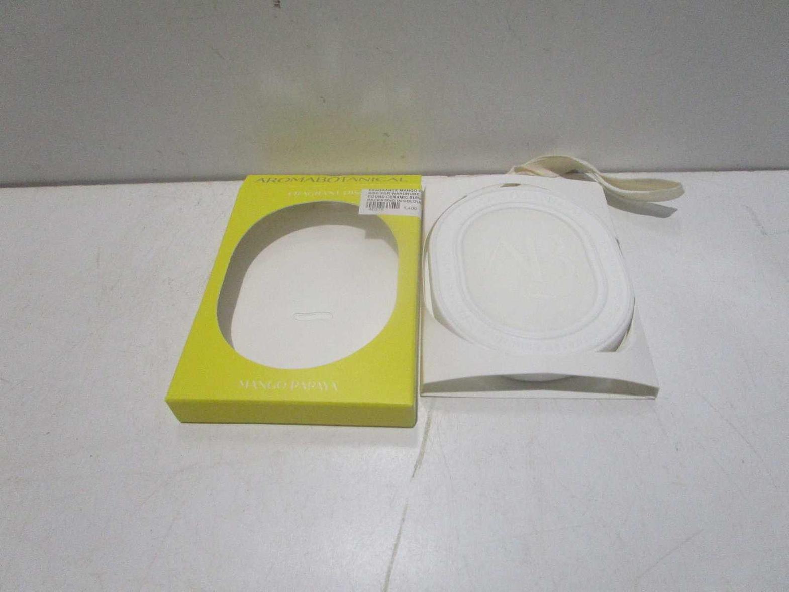 Fragrance mango papaya- disc for wardrobe 35g wax - round ceramic support - packaging in coloured card board box 400g yellow #ref:afdmp# 24ac#
