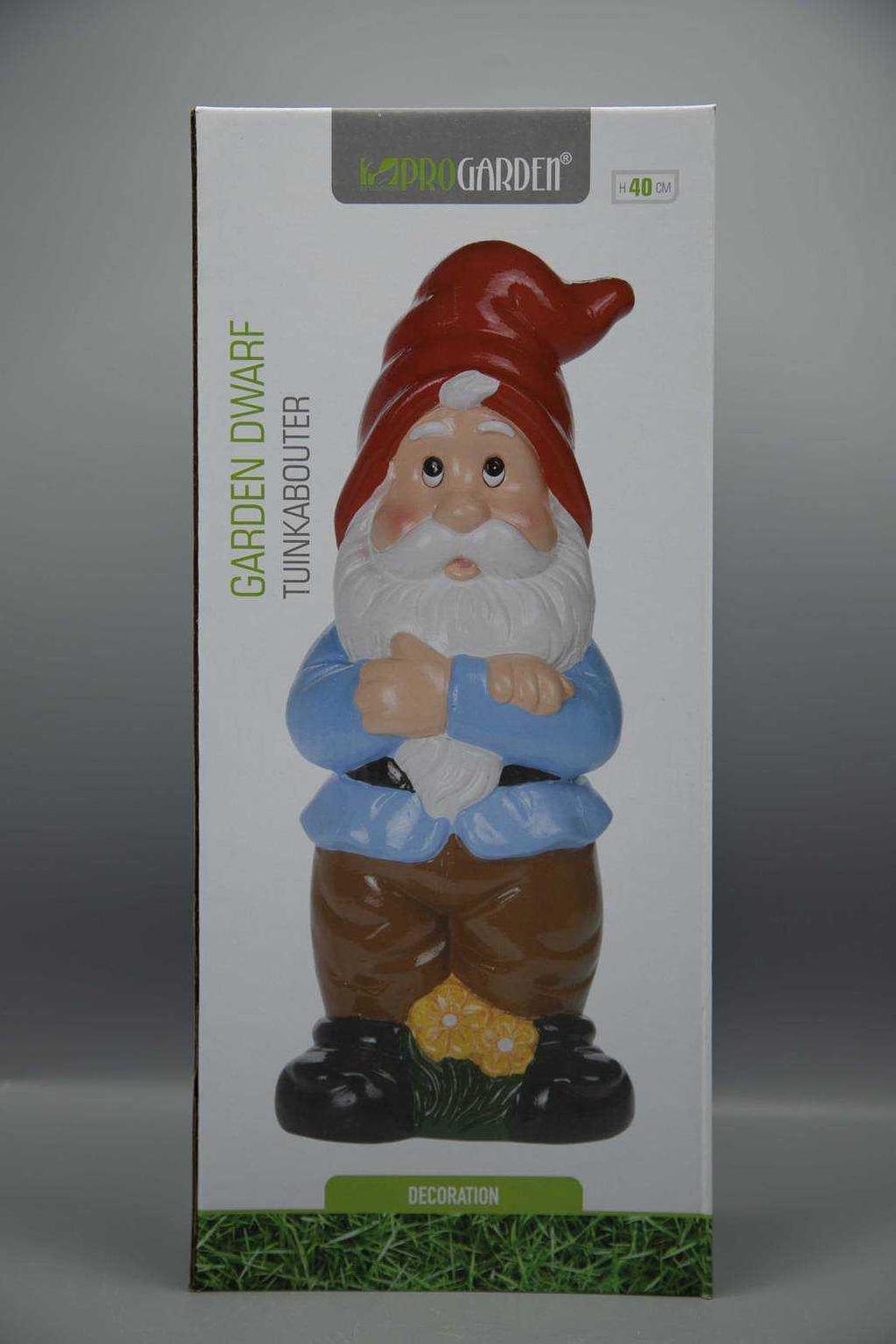 A charming ceramic garden dwarf measuring 17x12x40cm, perfect for adding a playful and decorative touch to outdoor or indoor spaces.
