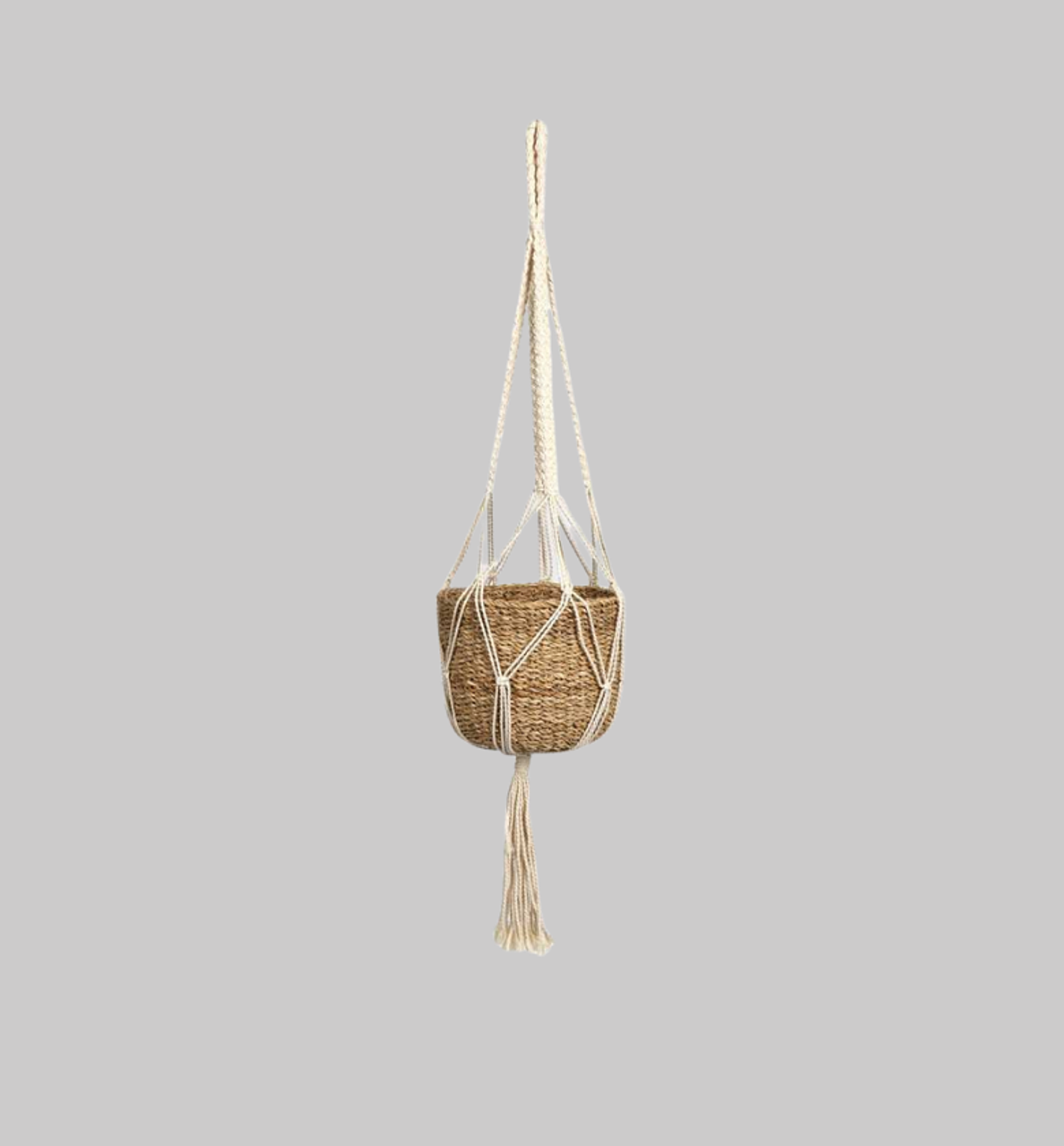 The Natural Living Macramé Hanging Bracket with Seaweed Plant Holder brings effortless boho elegance and natural warmth to any indoor space. Standing 120 cm tall, it features a delicately handwoven macramé design paired with an eco-friendly seaweed basket that securely holds your favorite potted plants. Its artisanal craftsmanship and natural fibers create a relaxed, earthy aesthetic that complements modern, coastal, or rustic interiors alike. Ideal for hanging in living rooms, balconies, or entryways, this piece adds height, texture, and a touch of organic beauty—turning any plant display into a serene decorative statement.