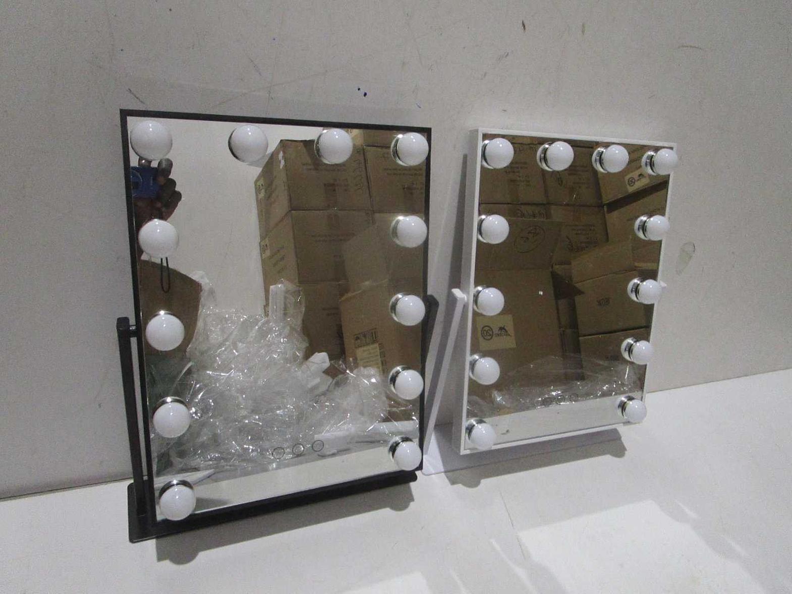 Available in two color options — white and black — this mirror combines modern design with practical lighting performance. Measuring 33.5 × 45 cm, it provides a generous reflection area suitable for vanities, dressing tables, or salon setups.