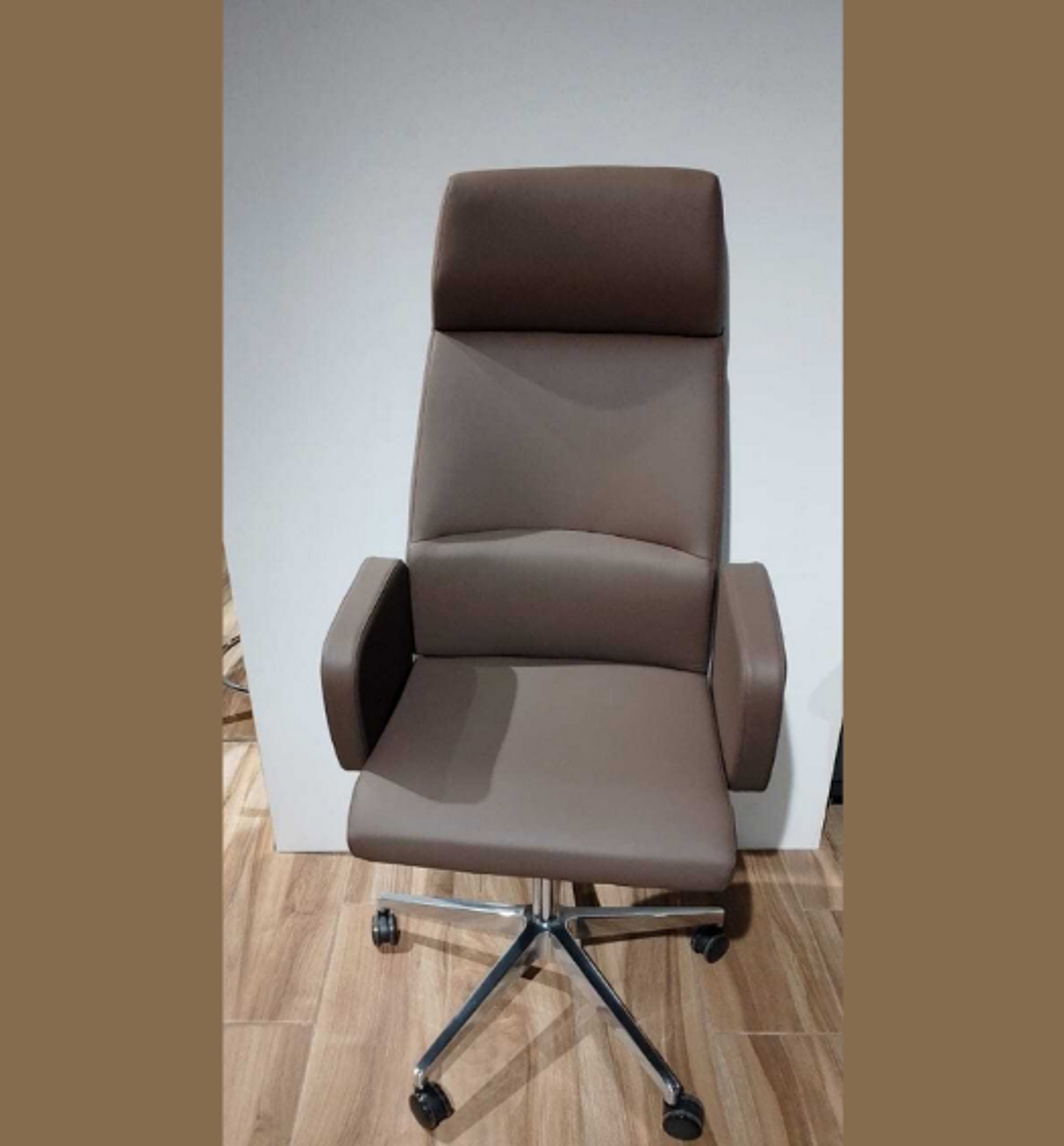 Office chair brown-8386-36 pu leather, alumunium base, with polywood wood veneer 62x121x63 #ref:6937a-brpwn# 1cl#