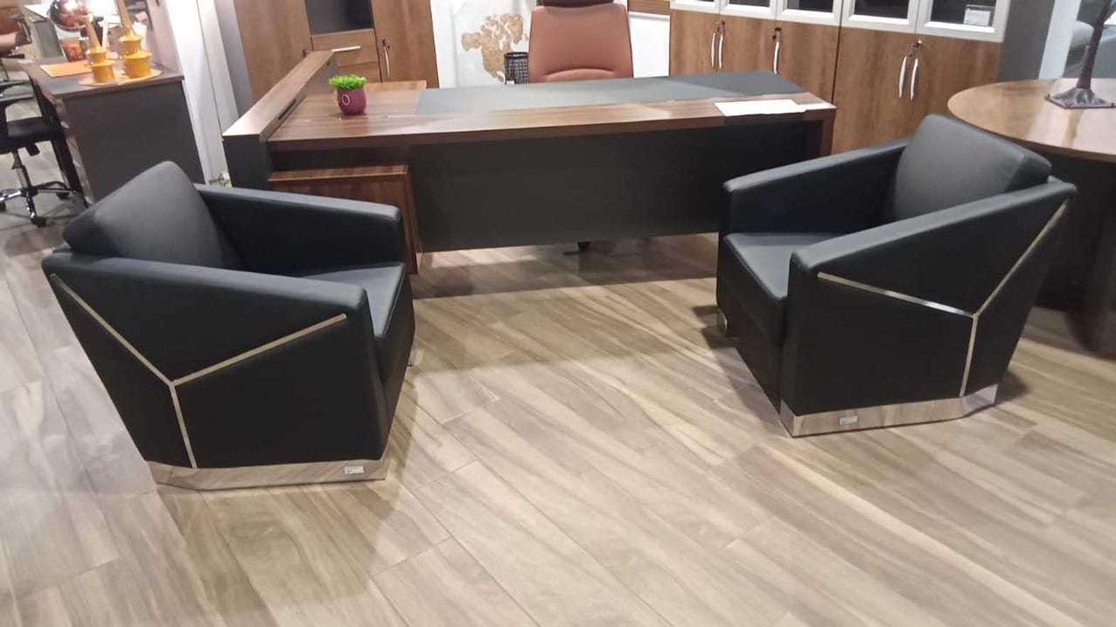 The Office Sofa Set 3+1+1 combines contemporary design with professional elegance, making it ideal for reception areas, meeting rooms, or executive offices. The set includes a 3-seater sofa and two single chairs, all upholstered in high-quality black PU leather that offers durability, easy maintenance, and a polished look. Ergonomically designed, the sofas provide comfortable seating while enhancing the aesthetic of any office environment. With its sturdy construction and sophisticated design, this office sofa set delivers both functionality and style, creating an inviting space for clients, staff, or guests.