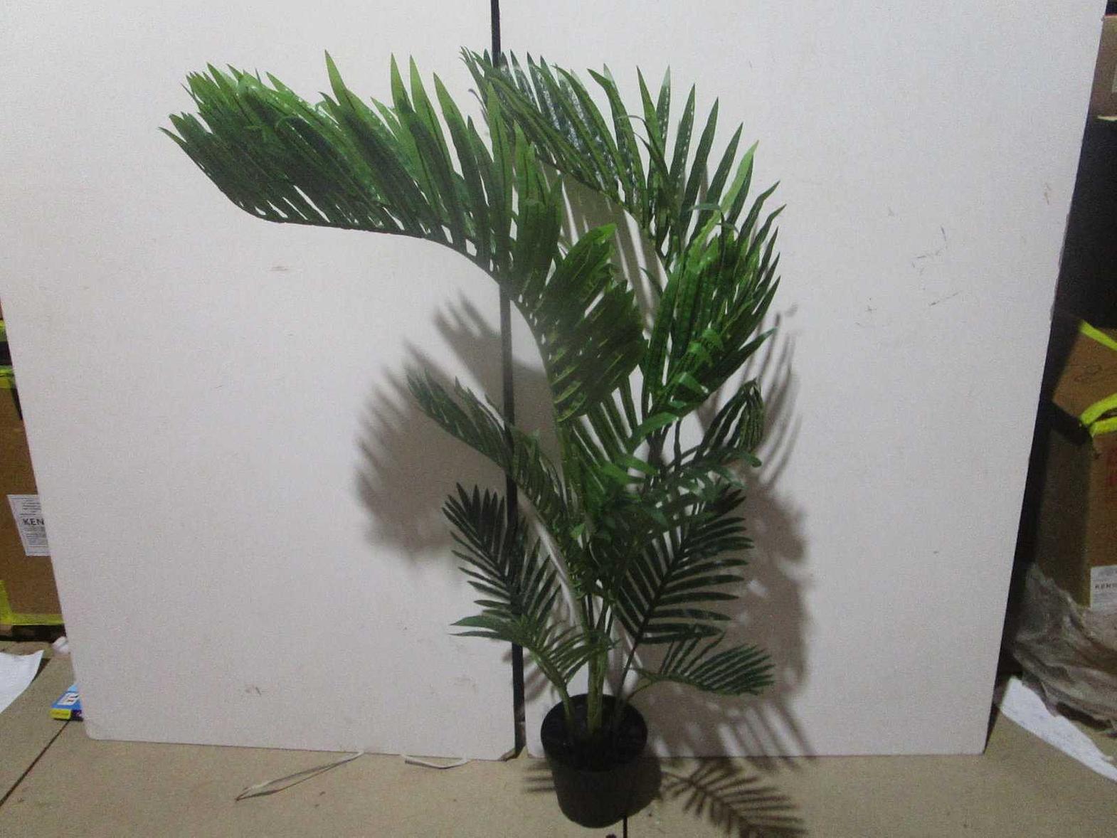 The Palm Potted Plant is a realistic artificial palm designed to enhance interiors with a tropical, refreshing touch.