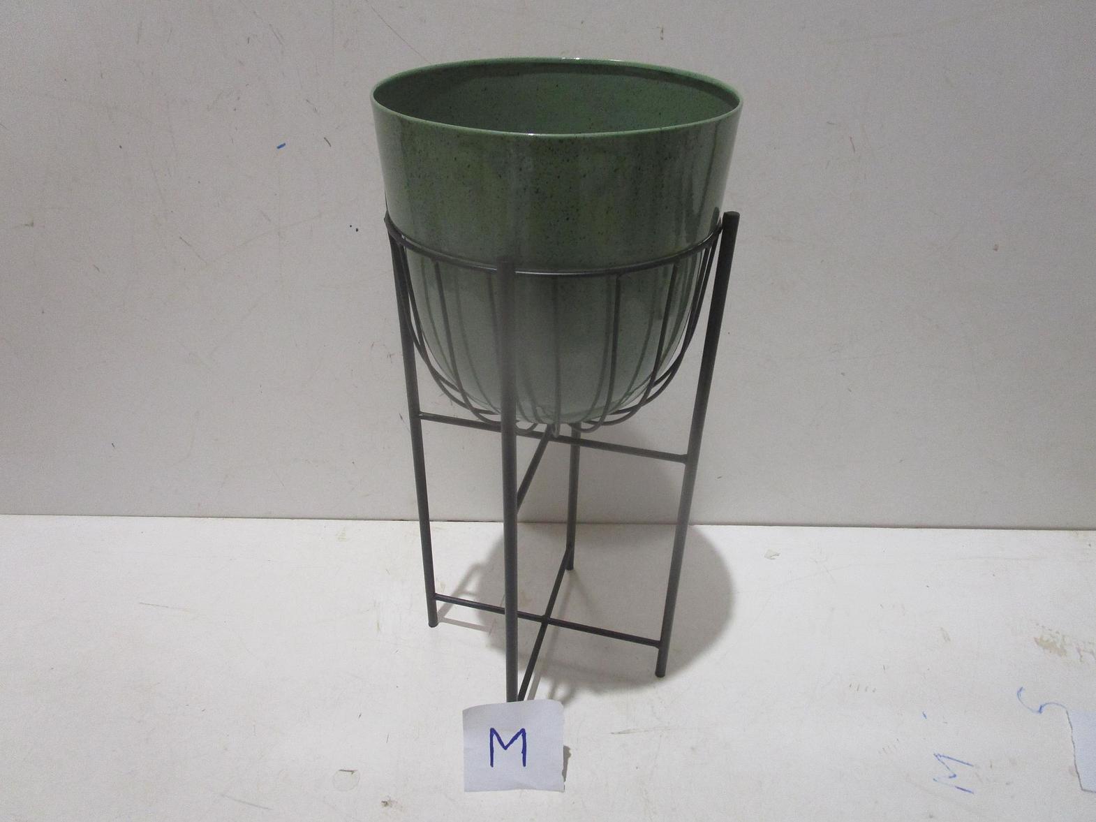 Pot indoor iron planter clear powder coated sparkled black finish on black stand - medium size #ref:12508 pot 25,5x23/1# 2ac#
