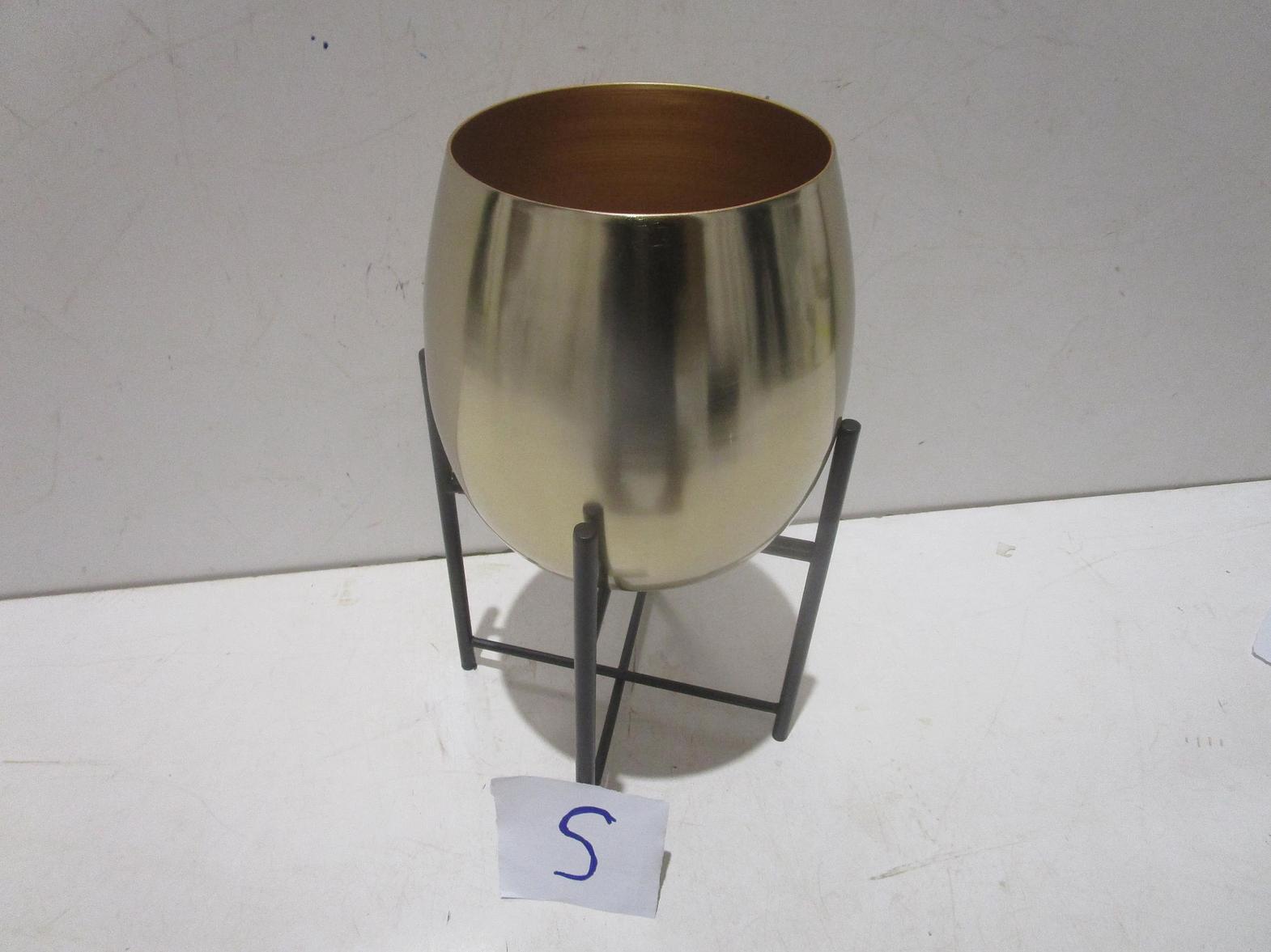 Pot indoor iron planter epl plated gold on black stand - small size #ref:12548 pot d24x24cm t# 1ac#