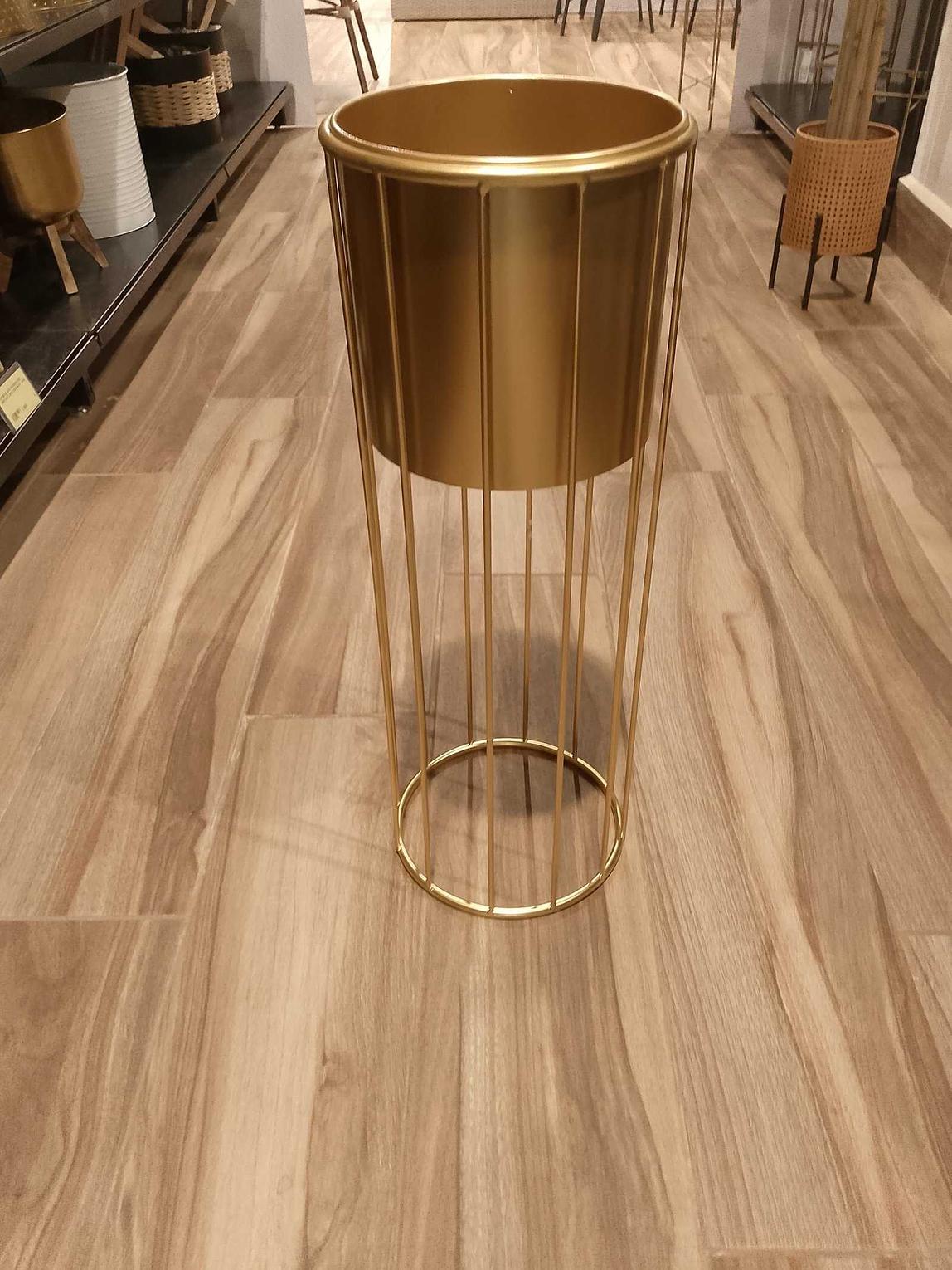 Crafted entirely from high-quality metal, these pots provide excellent durability and stability while maintaining a refined aesthetic. Their sleek cylindrical design and gold tone create a striking contrast when paired with lush green plants or decorative artificial arrangements.