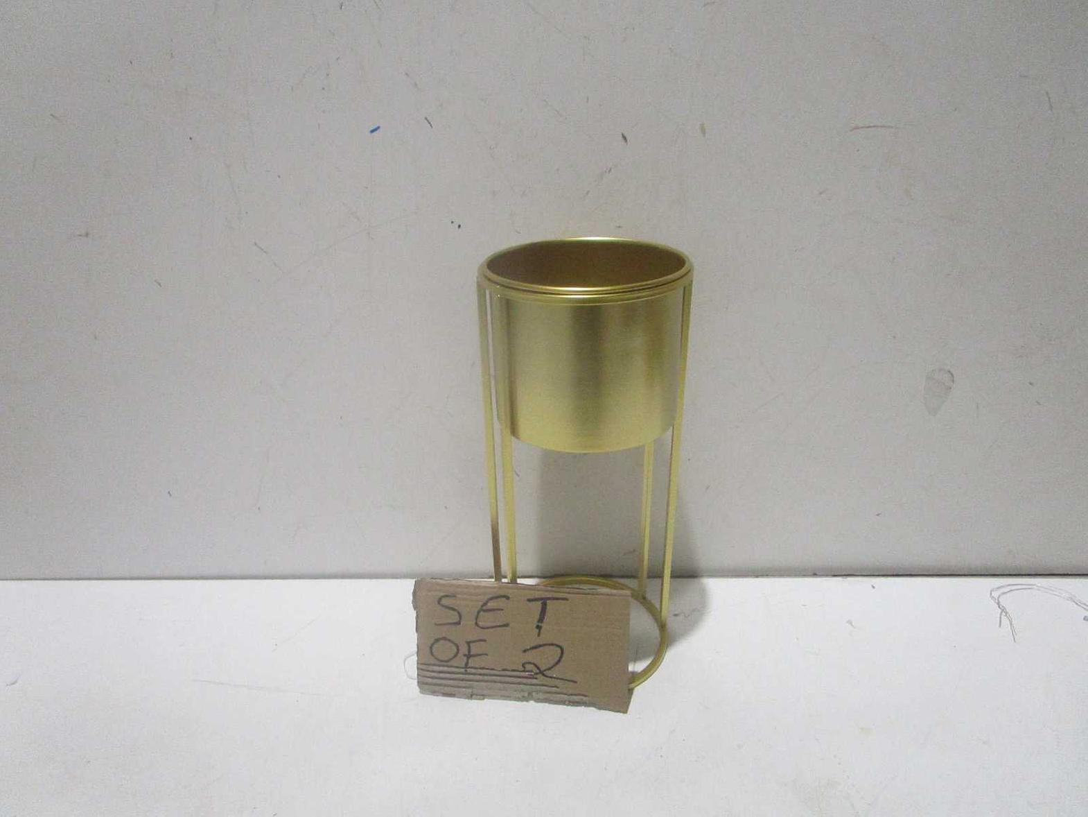 The Flower Pot Set features two elegant metal planters in a rich gold finish, offering a stylish and versatile way to display plants or decorative arrangements.