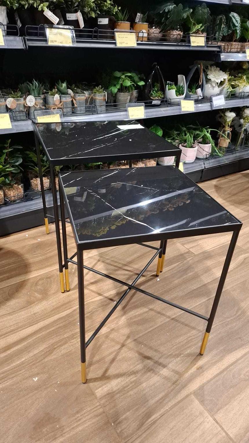 Available in two complementary sizes — 40×40×50 cm and 45×45×55 cm — the tables can be arranged together for a layered display or used separately to accent different areas of a room.