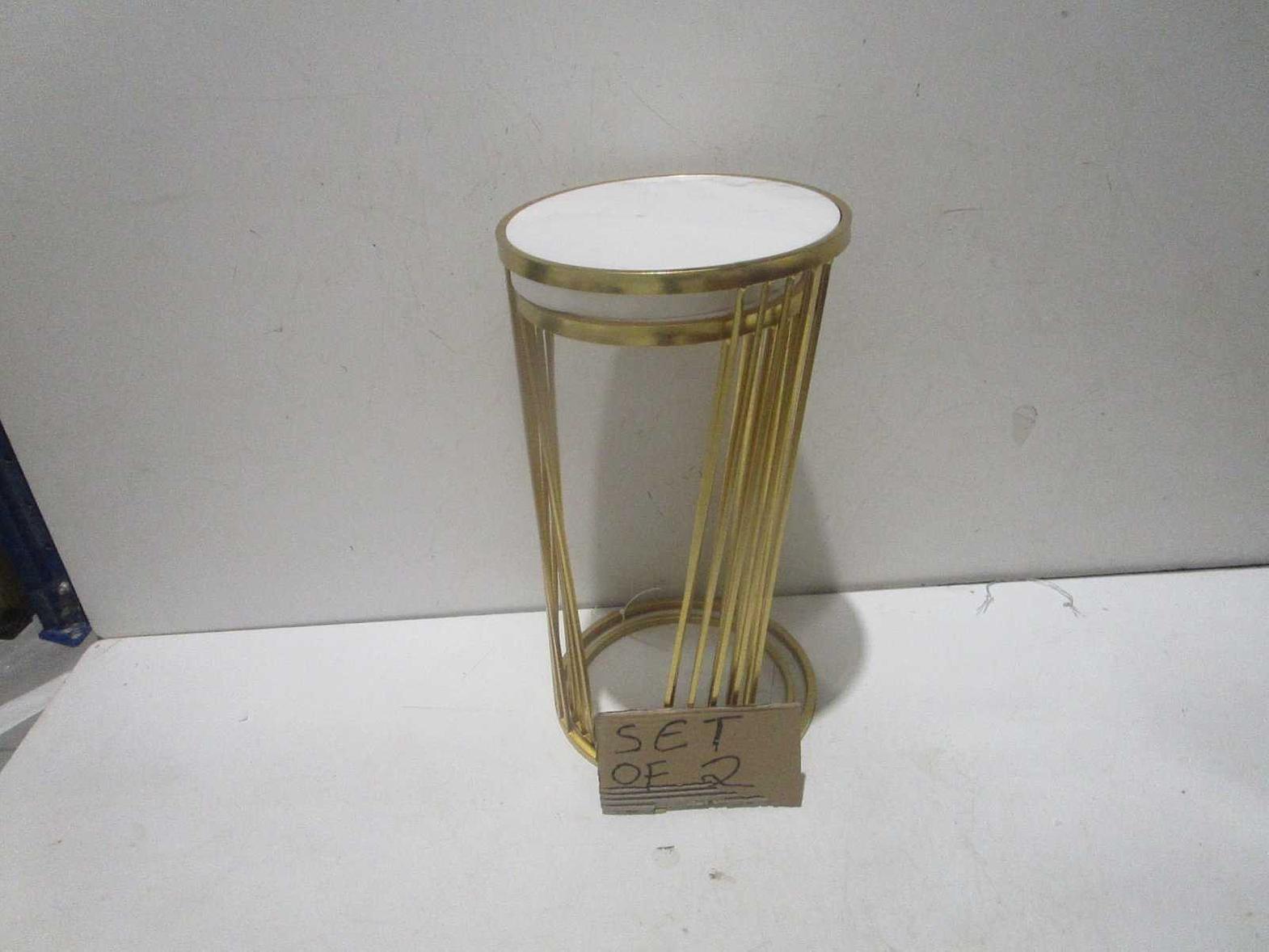 The Side Table Set features two elegant nesting tables crafted with white marble tops and gold-finished metal frames, combining natural texture with modern sophistication.