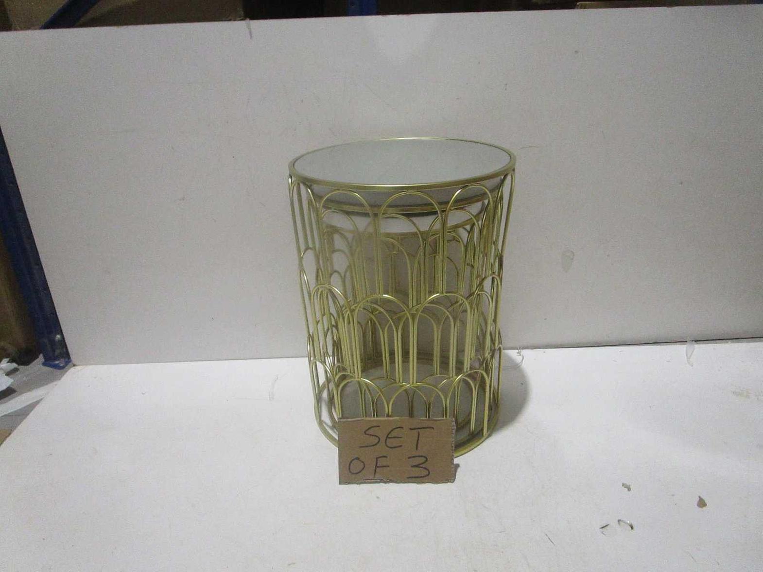 Its nesting structure allows compact storage when not in use, making it both functional and decorative. The combination of mirror and metallic gold adds a luxurious yet modern touch, elevating the overall ambience of any setting
