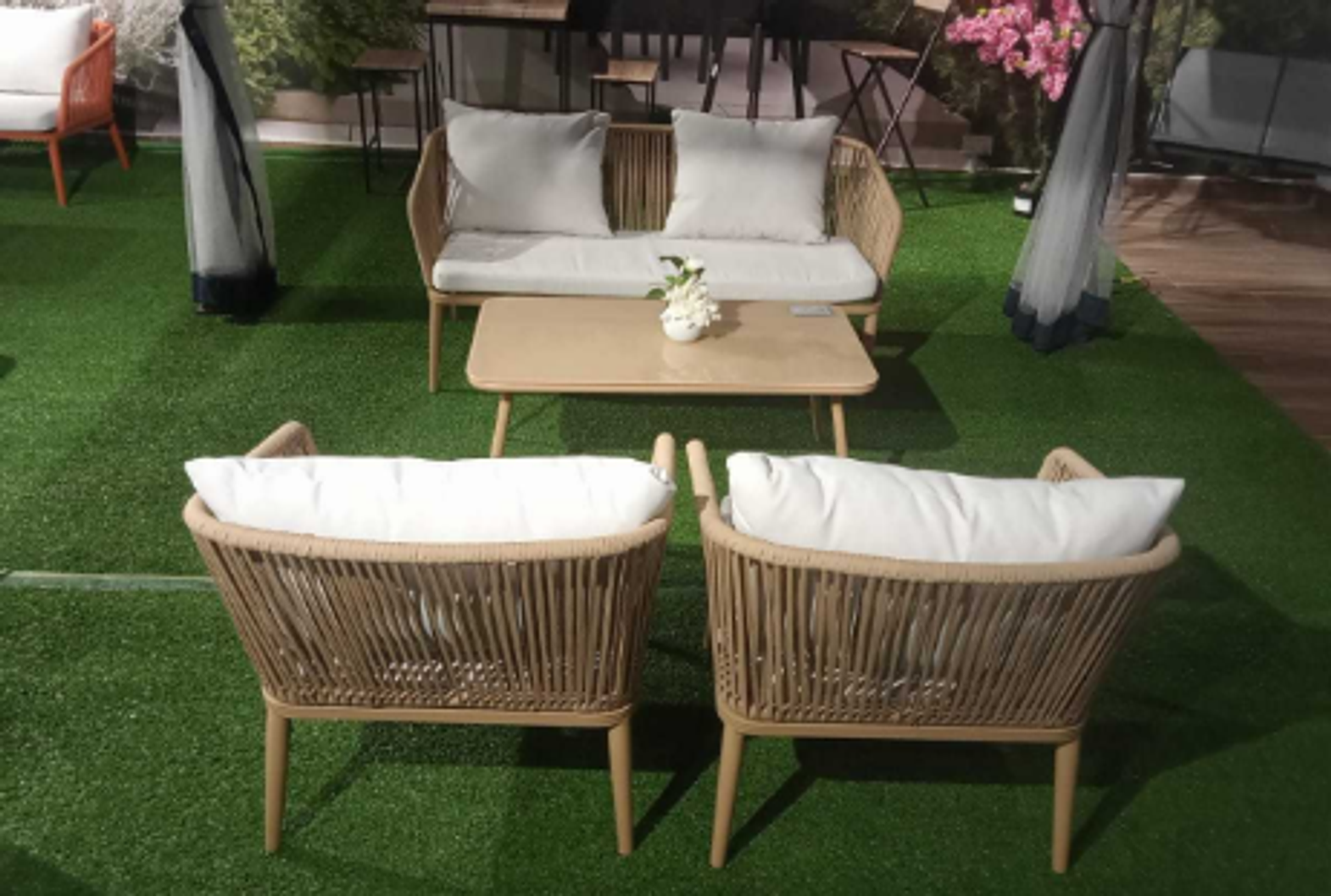 This 2+1+1 Beige Outdoor Sofa Set with Coffee Table combines timeless design with outdoor durability to create the perfect relaxation spot. The set features a comfortable two-seater sofa, two single chairs, and a sleek coffee table — ideal for patios, gardens, or poolside lounges. Its neutral beige tone adds a warm, inviting touch that blends seamlessly with any outdoor décor. Built from weather-resistant materials, this set is designed to endure the elements while maintaining its elegance and comfort. The spacious coffee table completes the setup, providing room for refreshments or decorative pieces. Perfect for both casual gatherings and peaceful outdoor moments. Sofa 2+1+1 beige outdoor set+coffee table #ref:950019-beige# 1cl#
