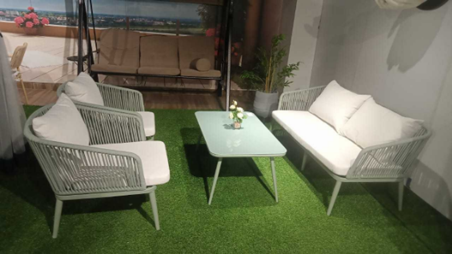 This 2+1+1 Green Outdoor Sofa Set with Coffee Table is designed to bring comfort and style to your outdoor living space. The set includes a two-seater sofa, two single armchairs, and a sturdy coffee table — perfect for patios, gardens, or balcony lounges. Crafted with durable, weather-resistant materials, it’s built to withstand sun and rain while maintaining its fresh, vibrant look. The soft green cushions provide cozy seating and a refreshing touch of color, while the sleek coffee table offers ample space for drinks, snacks, or décor. Ideal for gatherings, relaxation, or quiet evenings outdoors, this set blends elegance, durability, and comfort effortlessly. Sofa 2+1+1 green outdoor set+coffee table #ref:950019-green# 1cl#