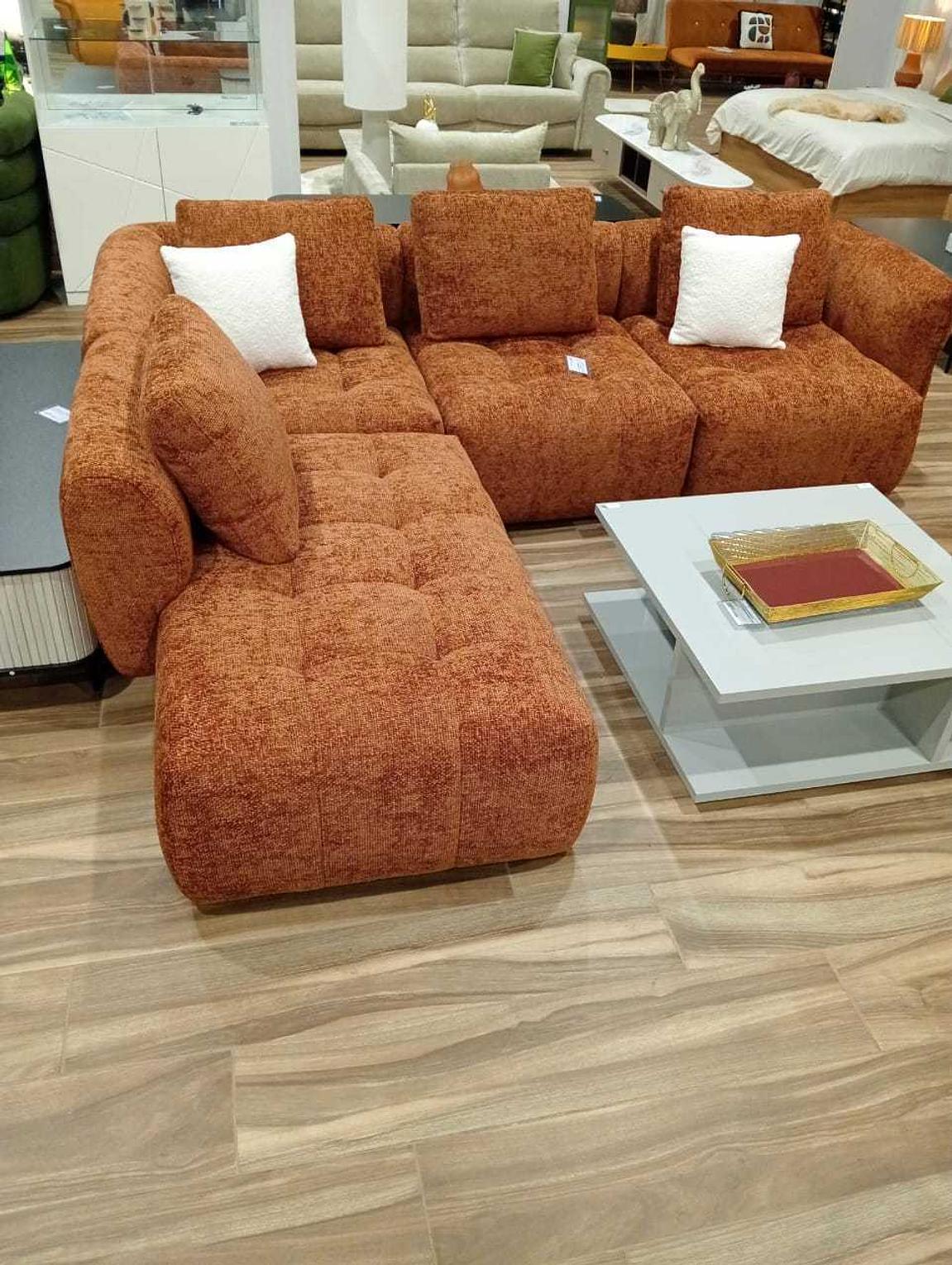 Sofa corner fabric rust set back with 2 pillow 45x45 ivory h0500990k 291x247x90 cat4 g0502030 fennelseed #ref:kf.8282 291x247x90 c# 4cl#