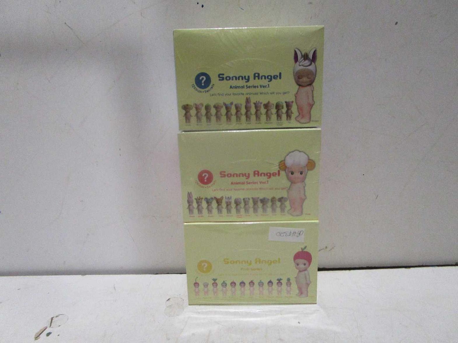 Set of 12 Sonny Angel dolls in a secret box, featuring Fruit Dreaming Animal designs, 3.5 inches each.