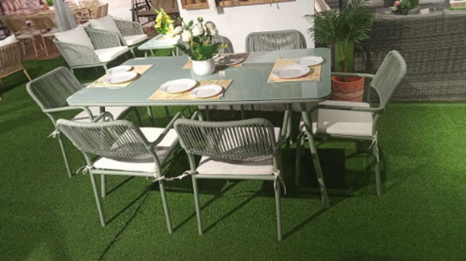 This Table and 6 Chairs Green Dining Set with Seat Pads brings charm, comfort, and functionality to your dining or outdoor space. The set includes a spacious table and six matching chairs in a refreshing green tone, designed to create a welcoming and elegant atmosphere. Each chair comes with a cushioned seat pad, offering extra comfort for long meals or gatherings. Built with durable, easy-to-clean materials, this set is perfect for both indoor and outdoor use. Whether you’re hosting family dinners, entertaining guests, or enjoying casual coffee moments, this dining set delivers style, stability, and everyday comfort. Table+6 chairs green with seat pad #ref:830040 830063-green# 7cl#